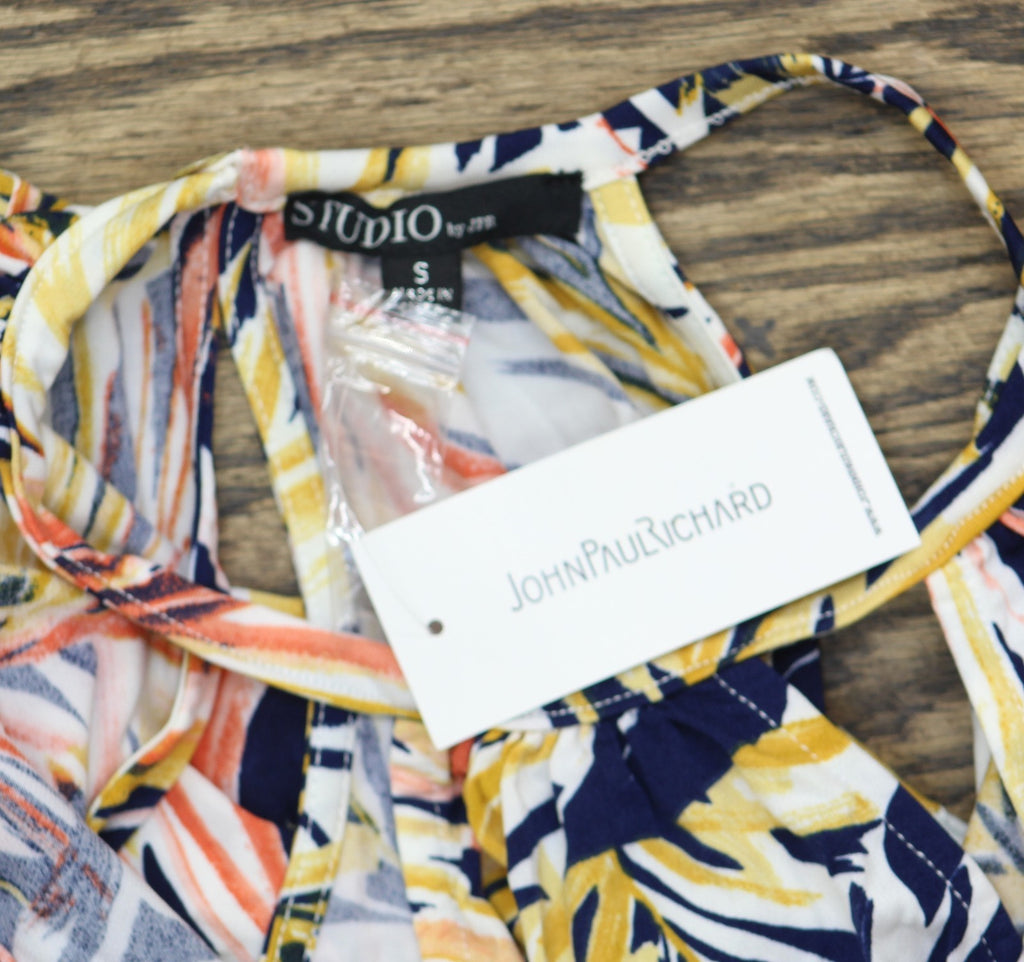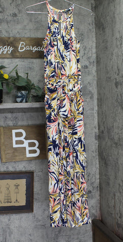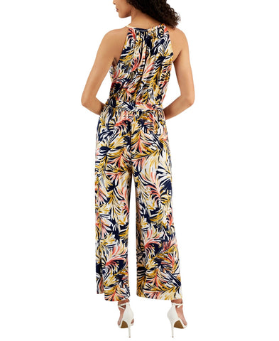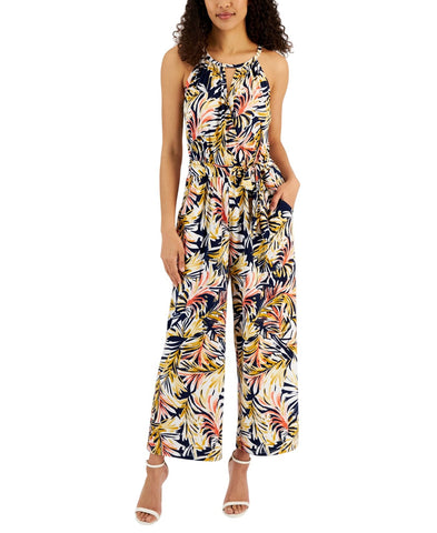 Cool and sophisticated this cropped jumpsuit from Jpr Studio features dramatic keyholes front and back and a trendy print. Wide legs add fashionable flare.
