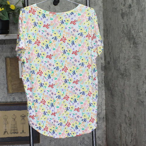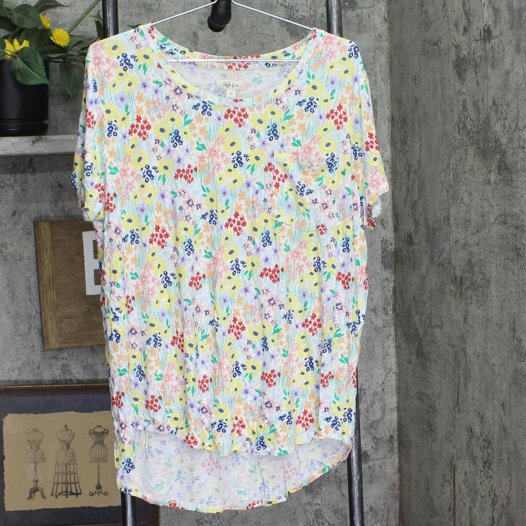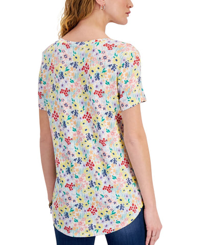 A lively floral print blossoms with beautiful color and dimension in this dropped-shoulder sleeve top from Style & Co.