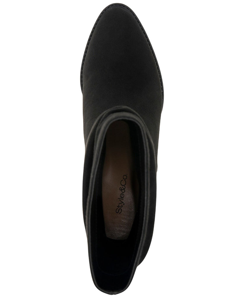 Pairing an ankle profile with casual ruching makes the Genoviaa booties from Style & Co a go-to accent from day to night. Features Stacked heel: 2-1/2" Almond toe Pull on Cushioned insole for added comfort Ruching at shaft Exclusive Upper: 100% microfiber fabric; lining: fabric, manmade; sole: 100% manmade Imported