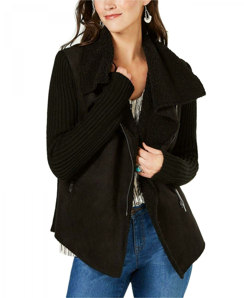 Incredibly soft and stylish, Style & Co.'s petite faux-shearling moto jacket is trimmed with fuzzy faux sherpa and knit long sleeves for a cozy look.