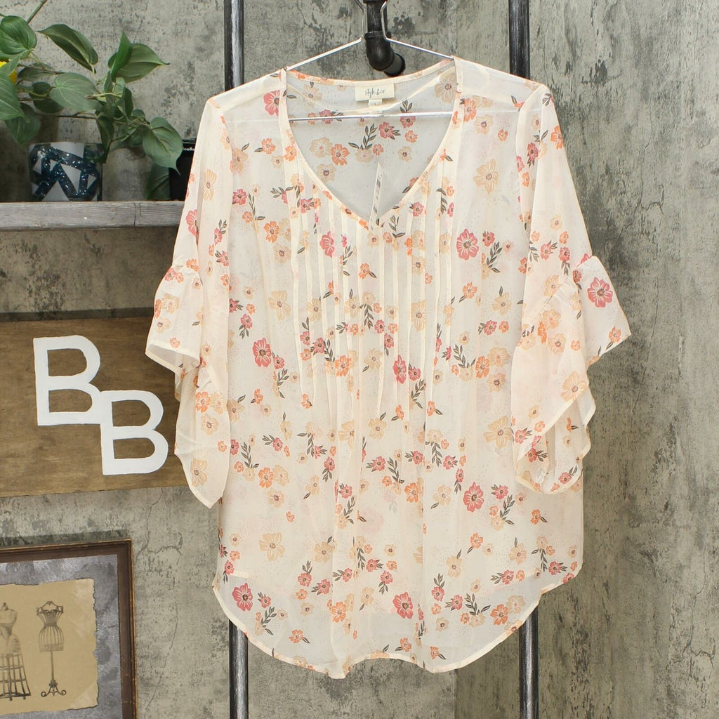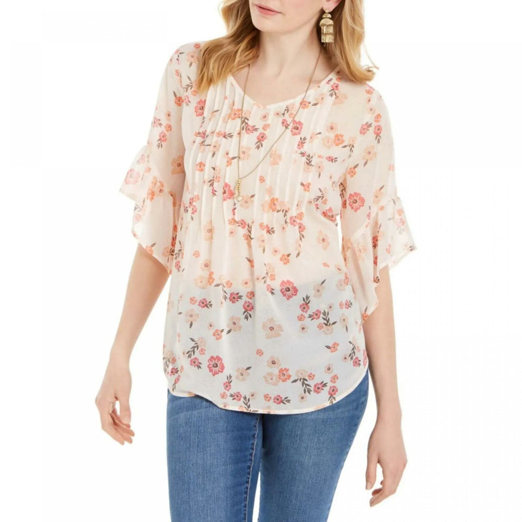Dress up your daytime look in this sweet, sheer pintuck blouse from Style & Co. covered in a delicate floral print. Layer with your favorite cami or tank top for privacy.