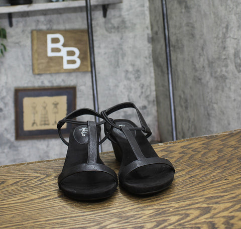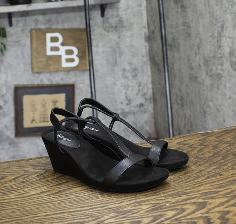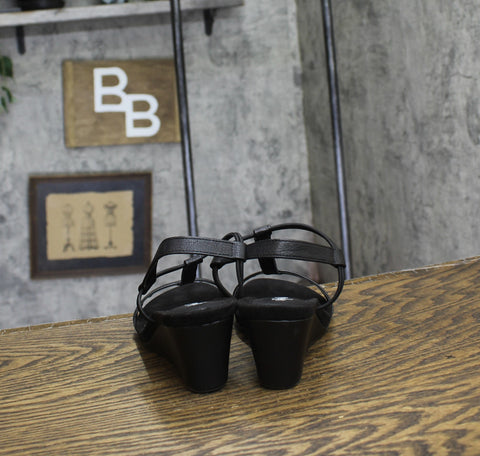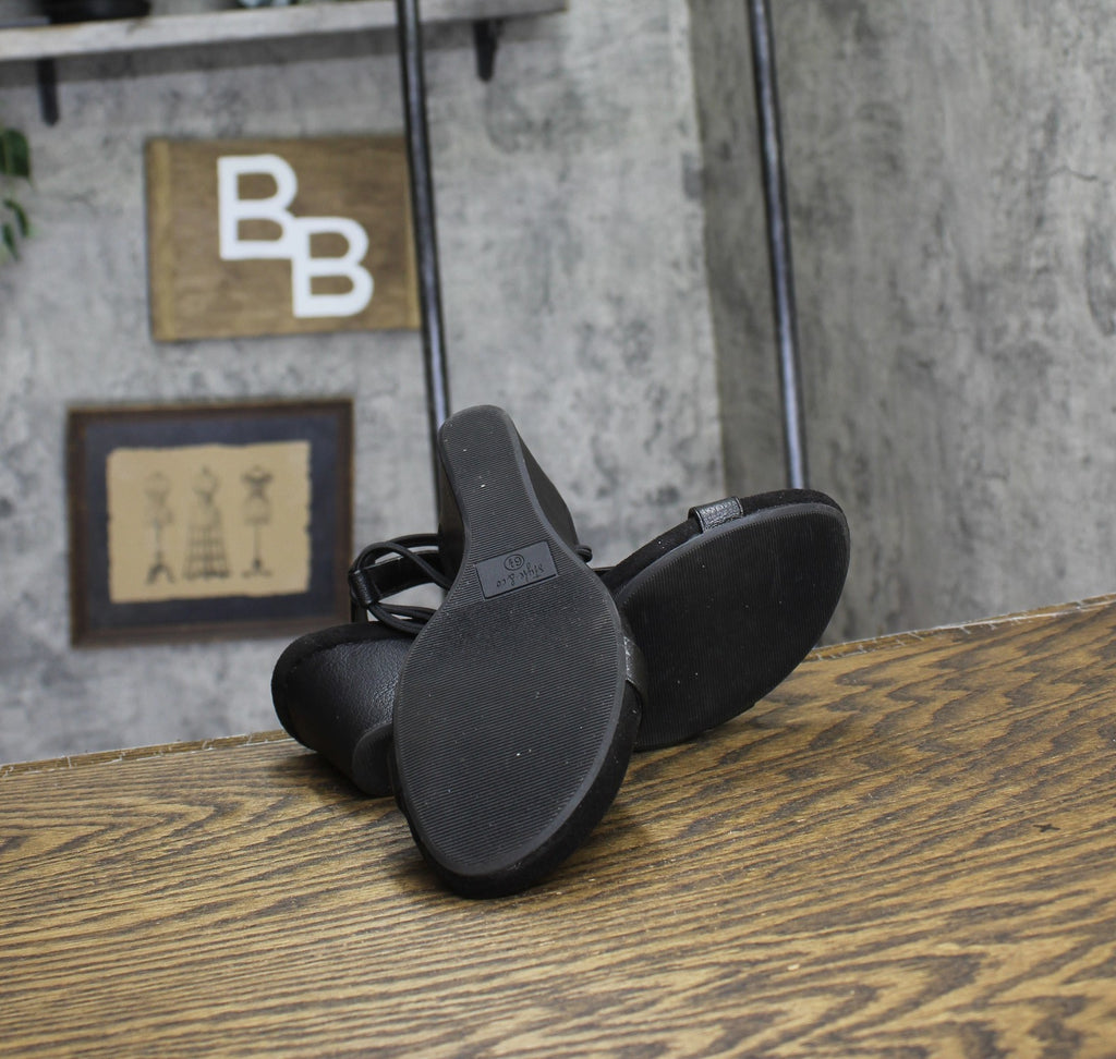 Style & Co. Womens Wedge Sandals Mulan Black Microsuede 6.5M