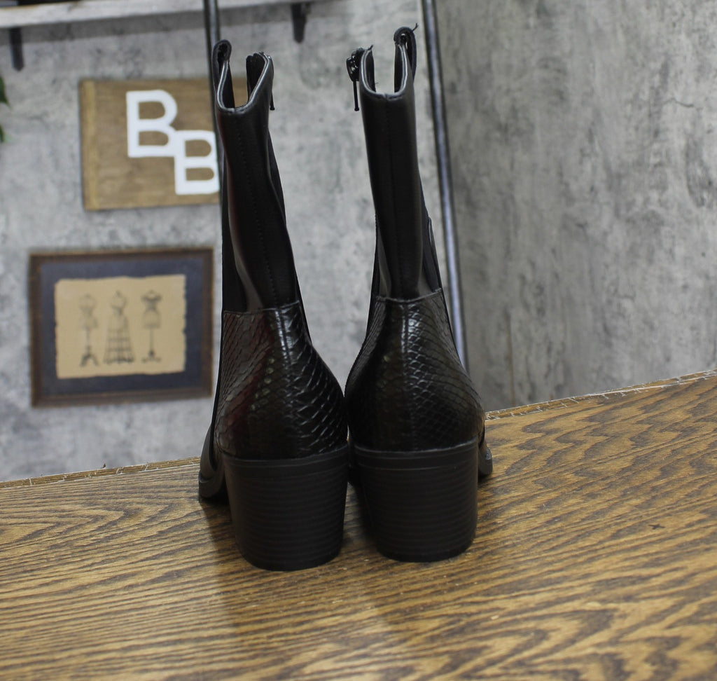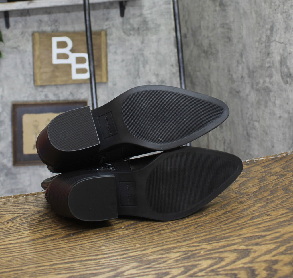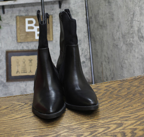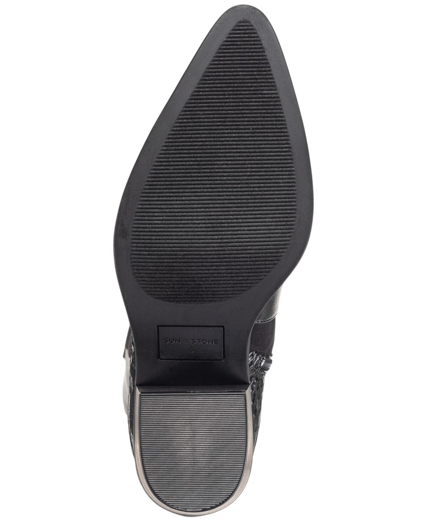 Mixing textures with western-inspiration, the Sun + Stone Biancaa boots are a fun addition to everything from prairie skirts to cropped denim. Features 2-1/2" heel Pointed toe Functional inside zipper closure Memory foam for added comfort Exclusive Upper: polyurethane, manmade; lining: polyurethane, tricot fabric; sole: 100% manmade Imported