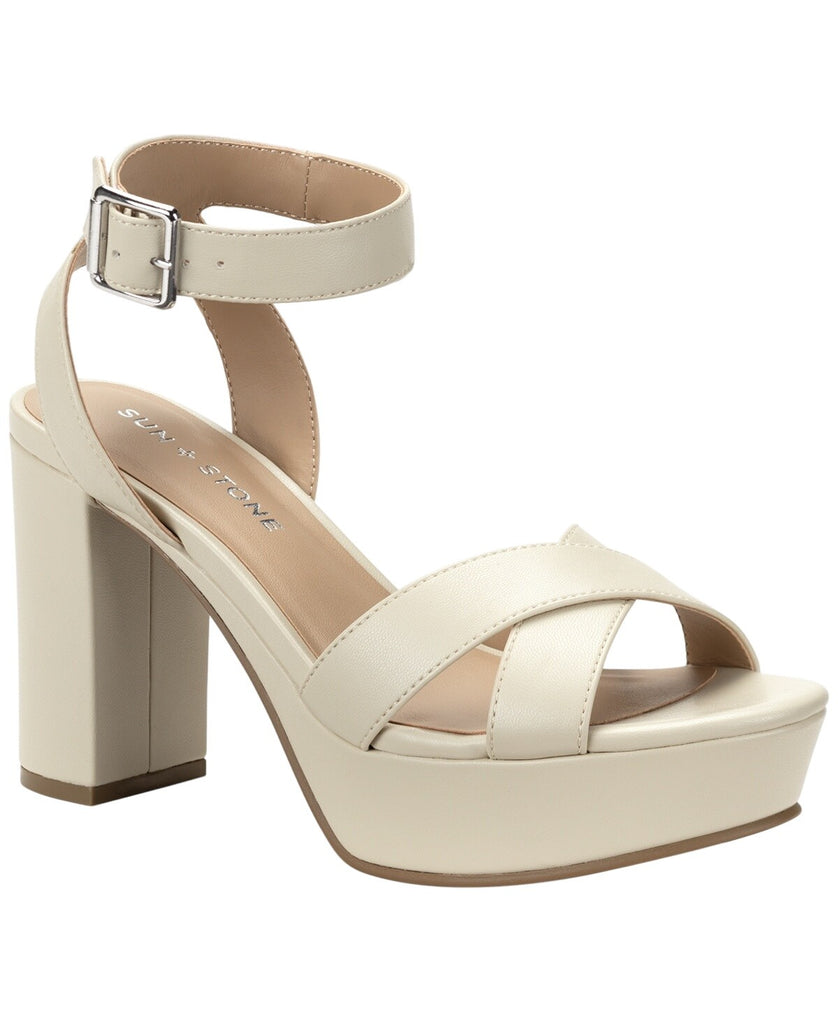 Sun + Stone Womens Lillah Dress Sandals Heels 10014732100 Bone Off White 10M