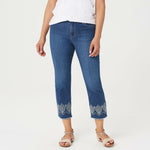 As if High Stretch denim isn't enough of a story (read: super comfy), these crop jeans offer a surprise ending! Spoiler alert: the bottom is accented by embroidery and a frayed hem--and they all lived stylishly ever after.