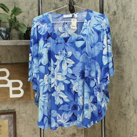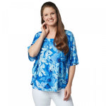Frame your face with the square neckline on this efflorescent embellished scarf top. From Susan Graver.