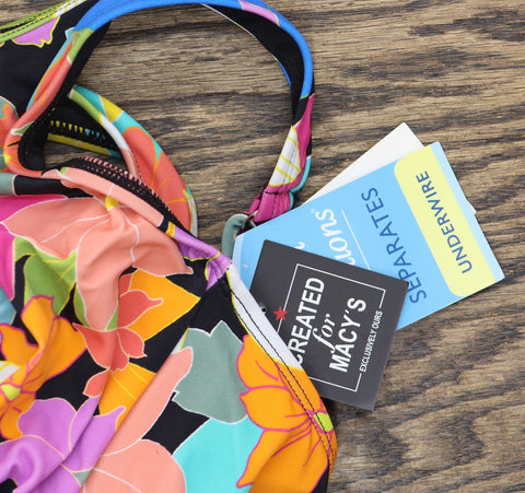 Scoop neck Pull-on styling Adjustable straps Tummy-control panel at front Non-removable cups; underwire Main fabric content: nylon/spandex; raschel: nylon/spandex; power net: nylon/spandex