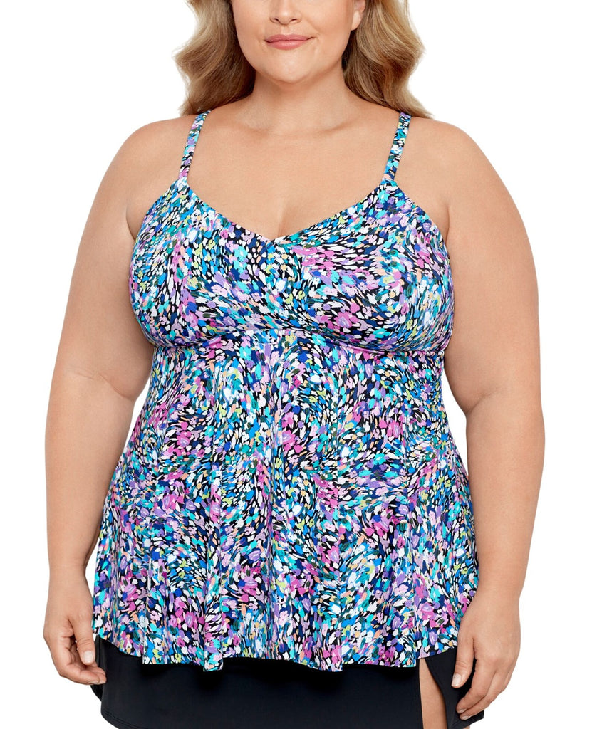 With a print inspired by watercolor and a skirted silhouette, this plus size tankini from Swim Solutions is sure to be your new fave.