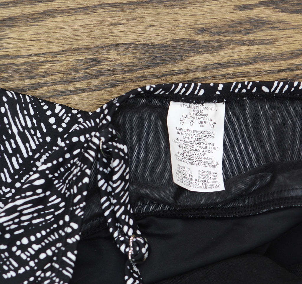 Swim Solutions Womens Abstract Bow Swimdress One Piece Swimsuit Black / White 16