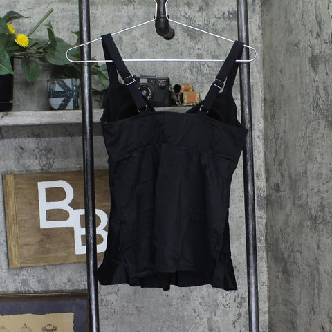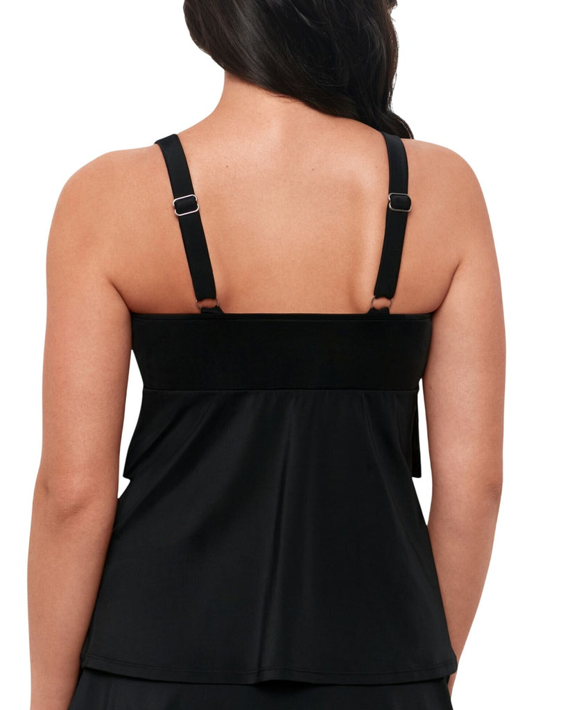 Rock the waves with flair in this solid tankini top from Swim Solutions, boasting three tiered ruffles that add a touch of playful elegance to your beach look.