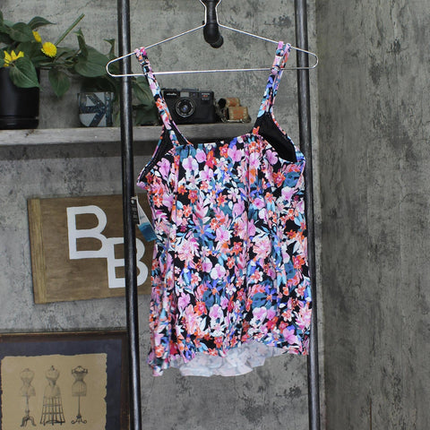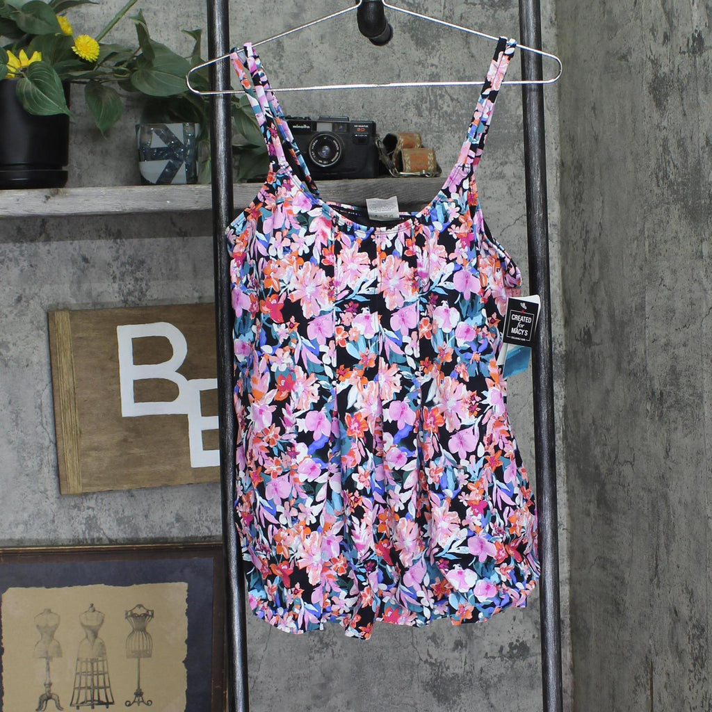 Features: Make a splash in style with this pleated tankini from Swim Solutions guaranteed to turn heads poolside or beachside. Non-removable cups; no underwire; full bust-support. Pulls on; adjustable shoulder straps. Lined. V-neck; pleated at front. Style #: 806836 Nylon spandex; lining: nylon spandex Imported