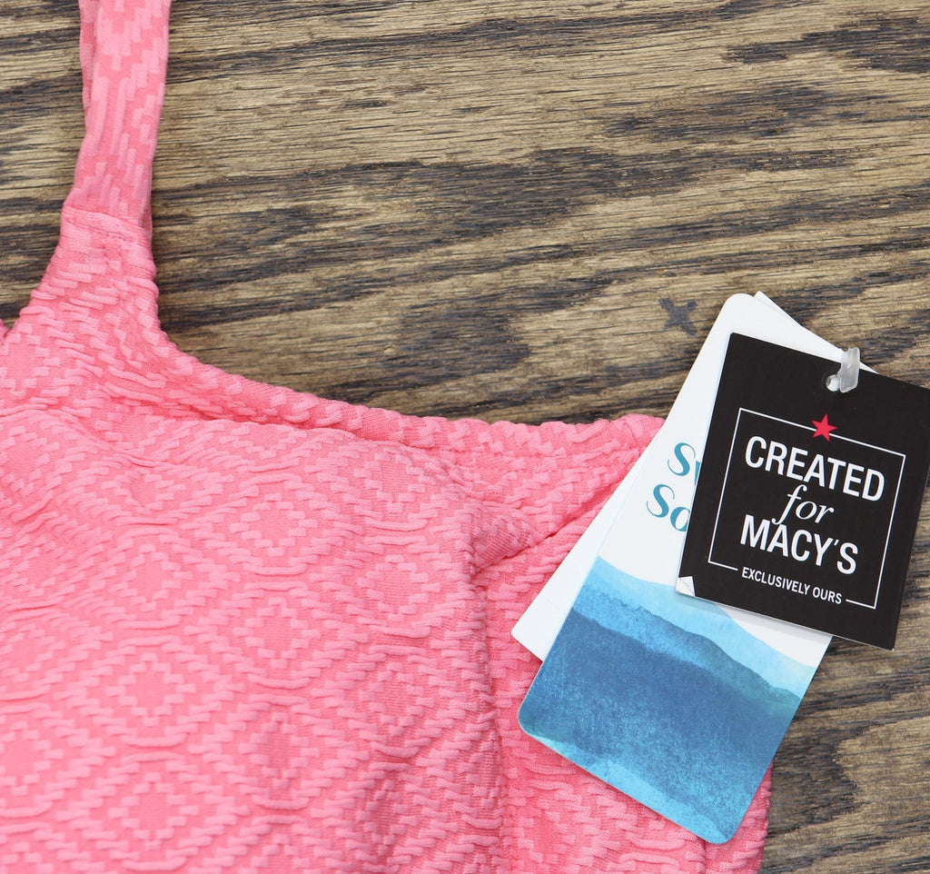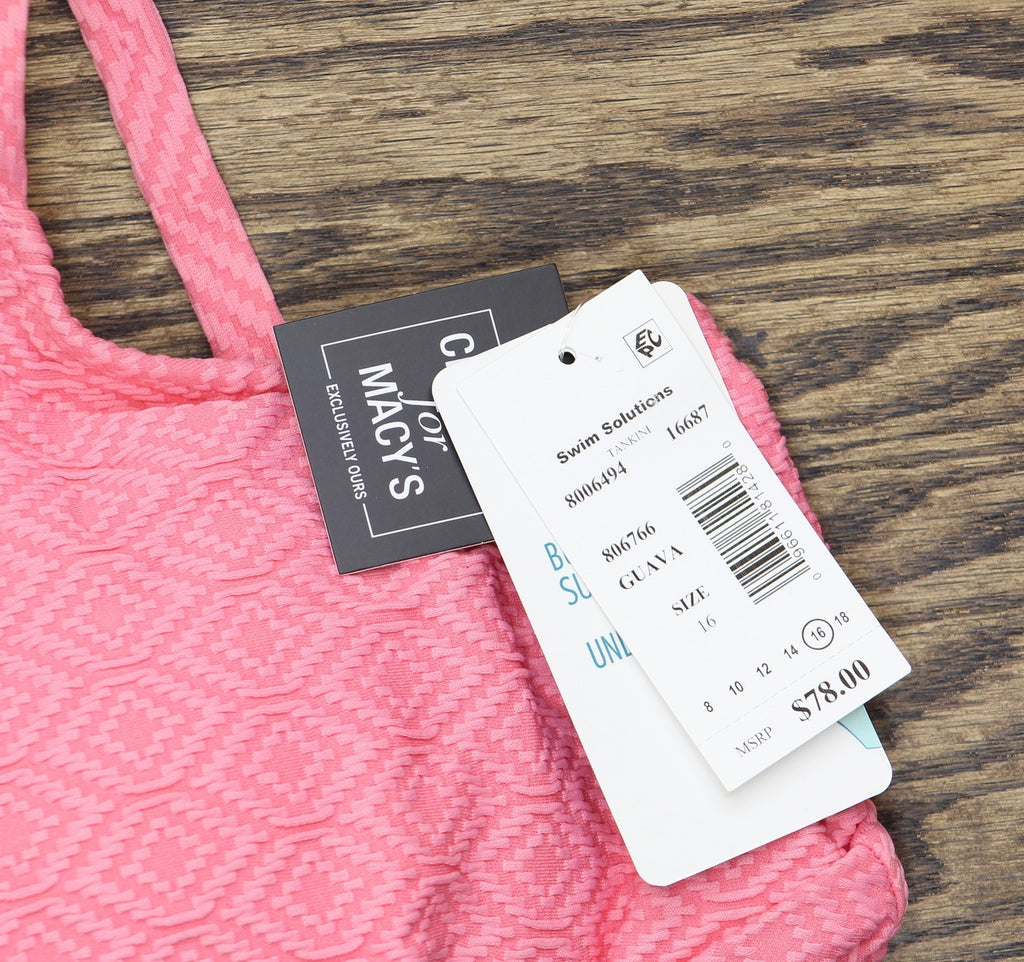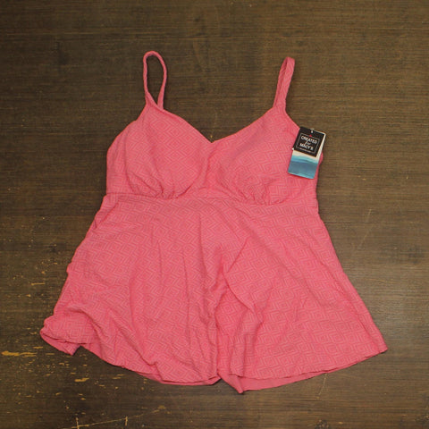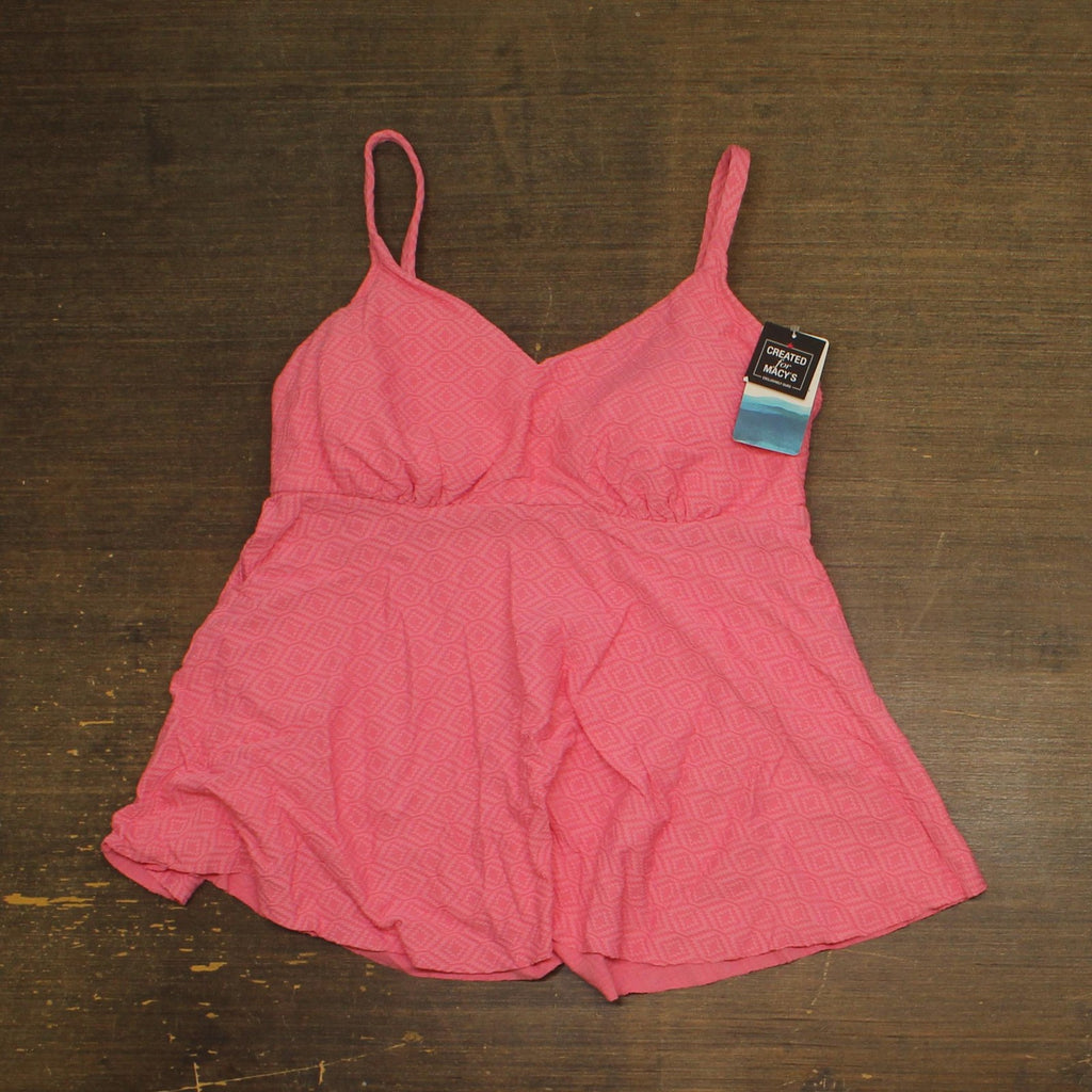 Removable cups with underwire; full bust support Pulls on; adjustable shoulder straps Empire waist; flared skirt Allover diamond-patterned texture Nylon, elastane