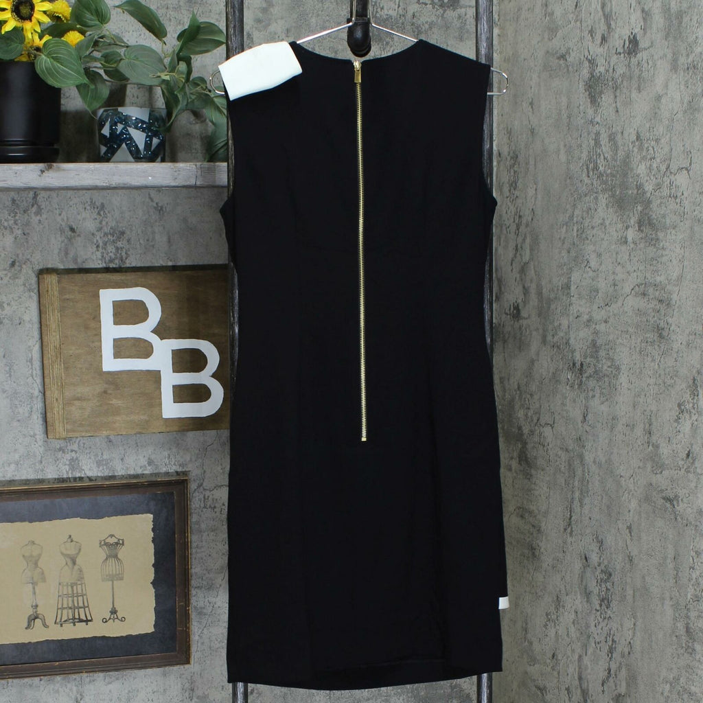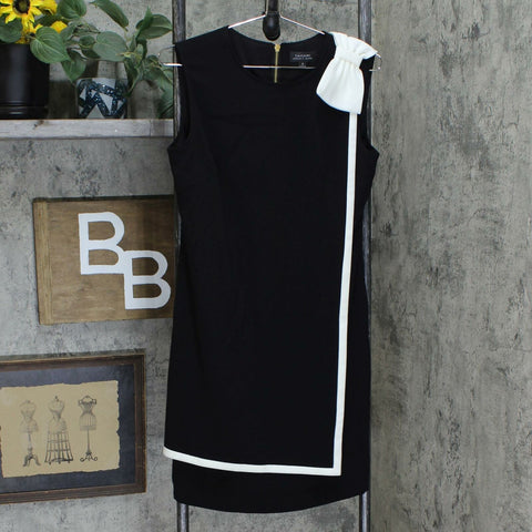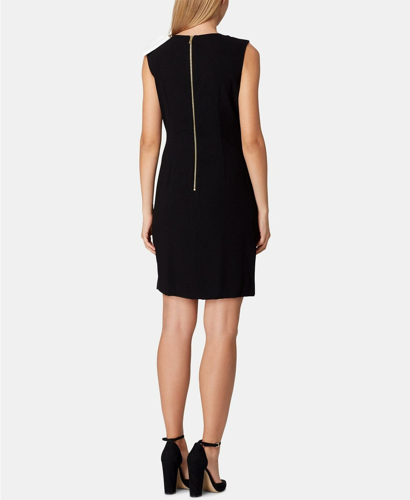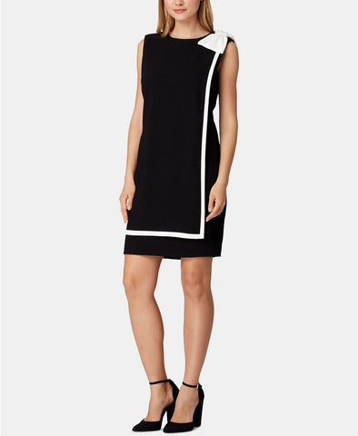 A crisp line traces from hem to bow-adorned shoulder, adding classic style to this Tahari ASL dress.