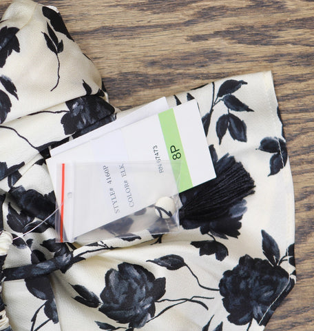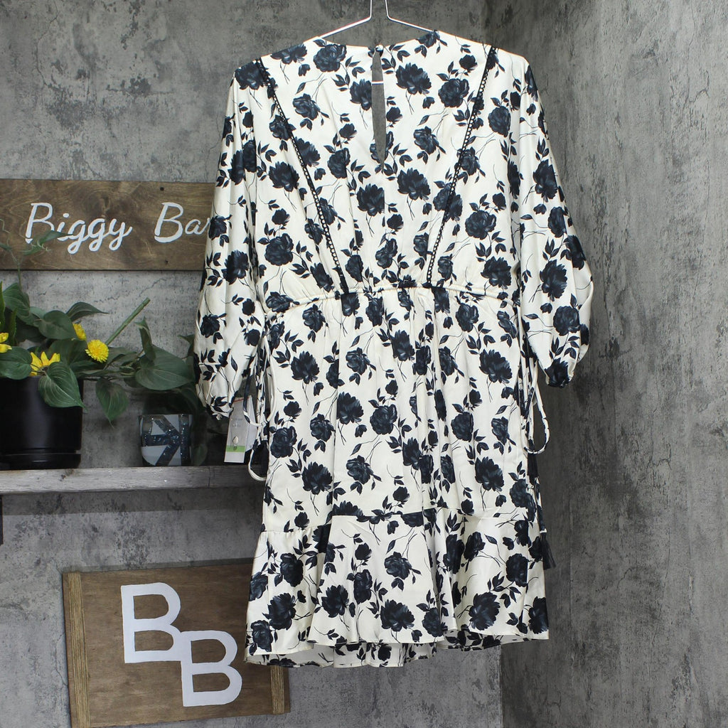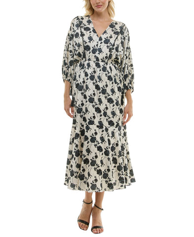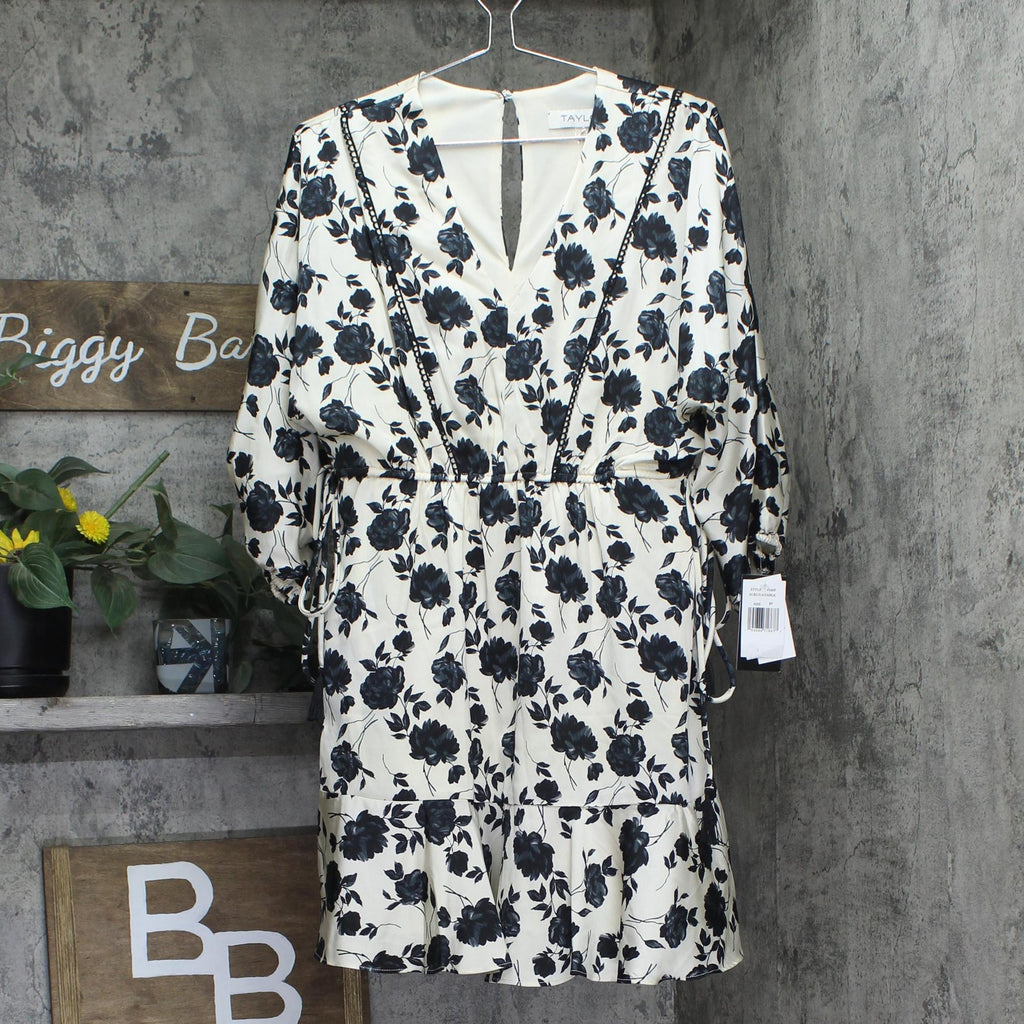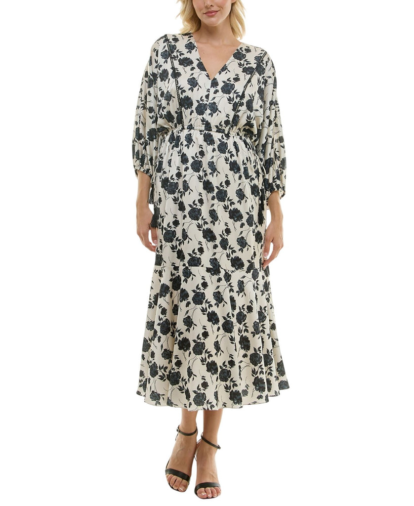 Taylor Womens Petite Floral-Print Ruffled-Hem Dress 4160P Ecru Black Multi 8P