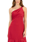 A chic one-shoulder silhouette brings fierce style to this stunning midi dress from Taylor. Tiered ruffles at the hem complete the look.