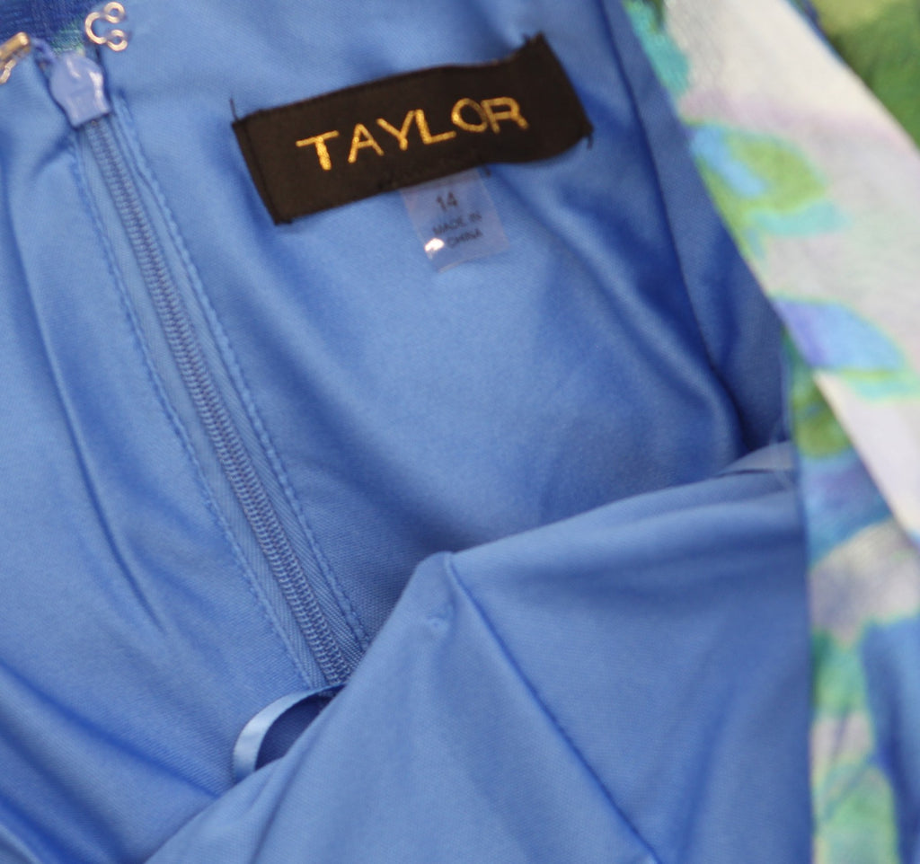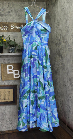 Taylor Womens Twisted Halter Printed Gown Dress 9185S Sapphire Blue 14