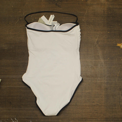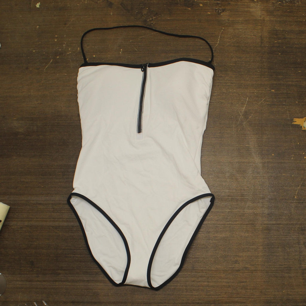 Go for a dip in this textured one-piece designed in a strapless silhouette with a sporty neckline zip. Strapless Moderate back coverage UPF 50+ sun protection Lined 95% recycled nylon, 5% spandex Hand wash, line dry This product meets Sustainably Sourced Materials criteria: contains at least 30% sustainably sourced materials