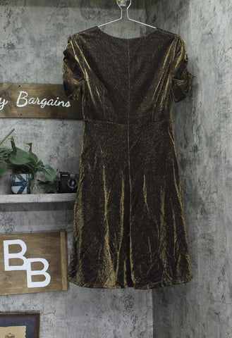Tommy Hilfiger Ruched Velvet Puff Sleeve Fit Flare Dress Bronze / Black 4