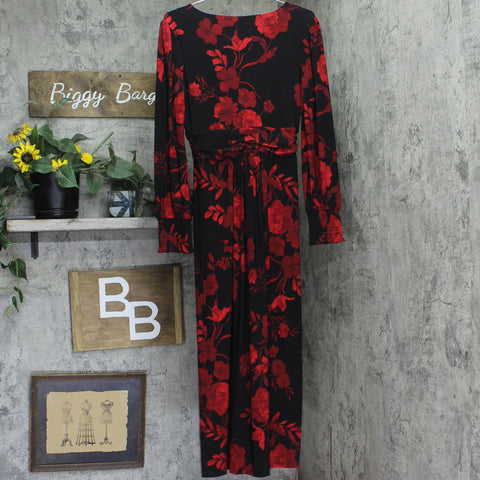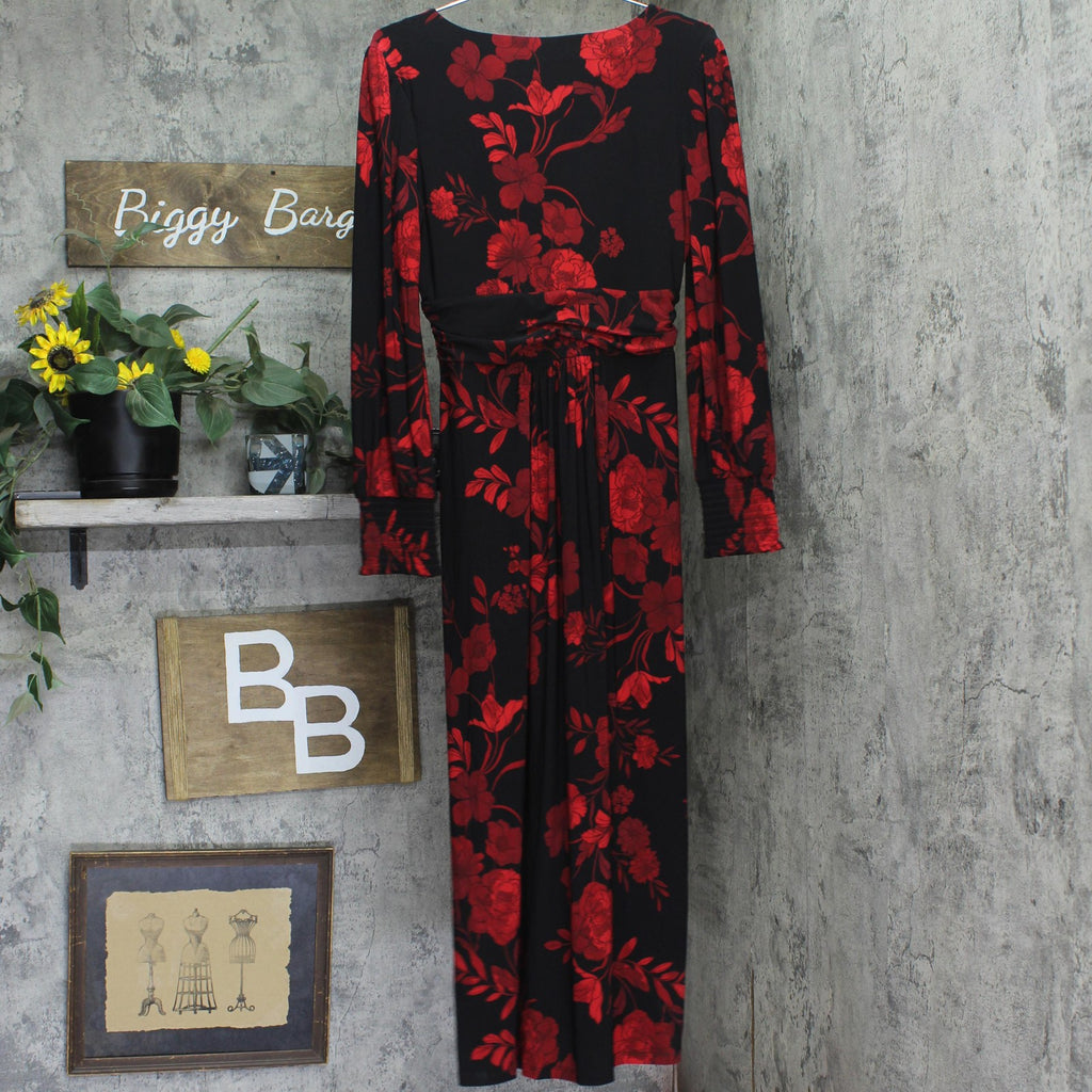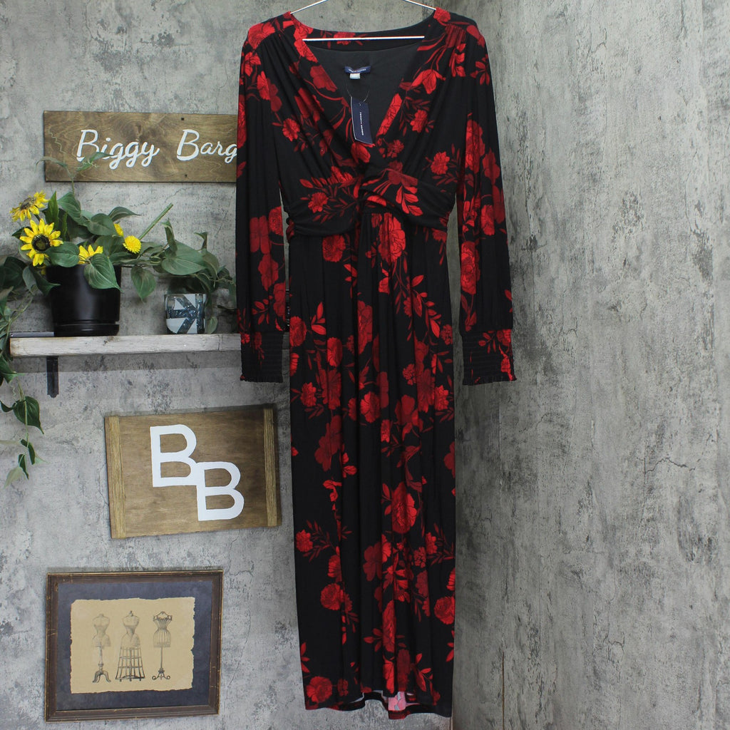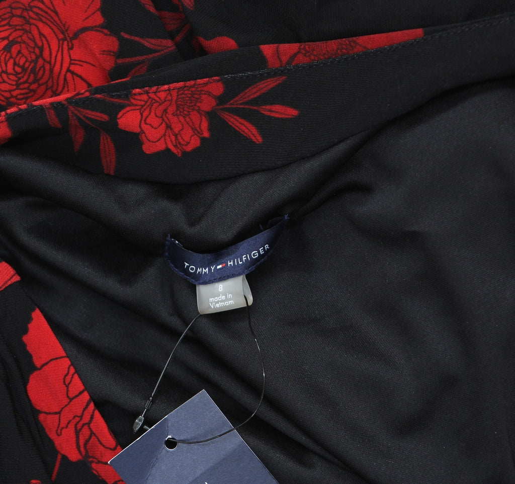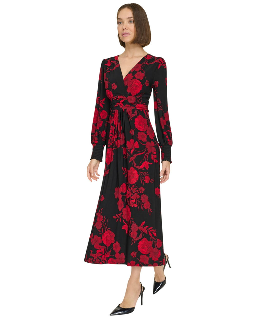 Tommy Hilfiger Surplice-Neck Long Sleeve Smocked Midi Dress Black / Scarlet 8
