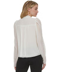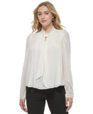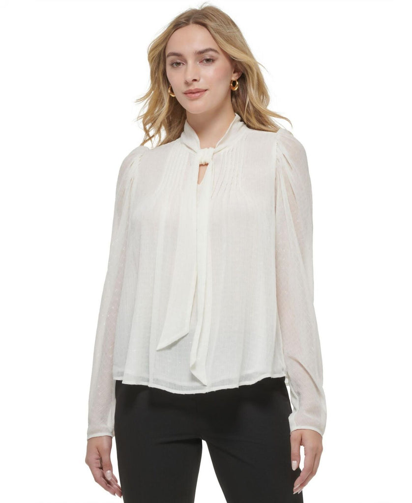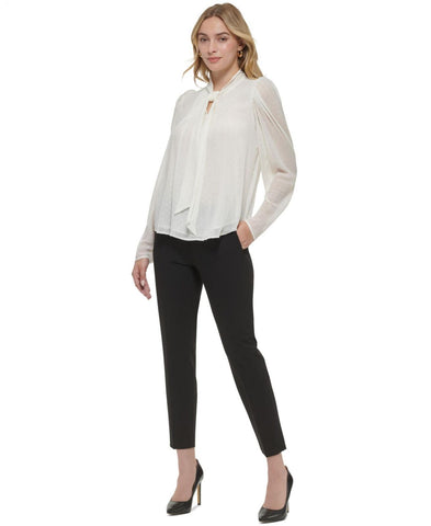 Sleek clip-dots add a textural element to a sophisticated petite blouse by Tommy Hilfiger, finished with a polished tie-neck design, this style is workweek ready.