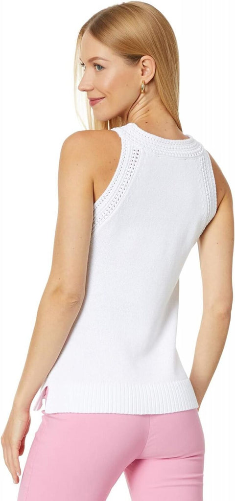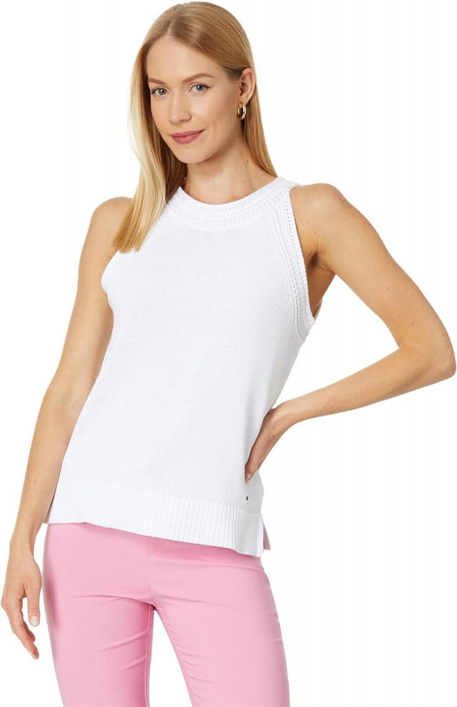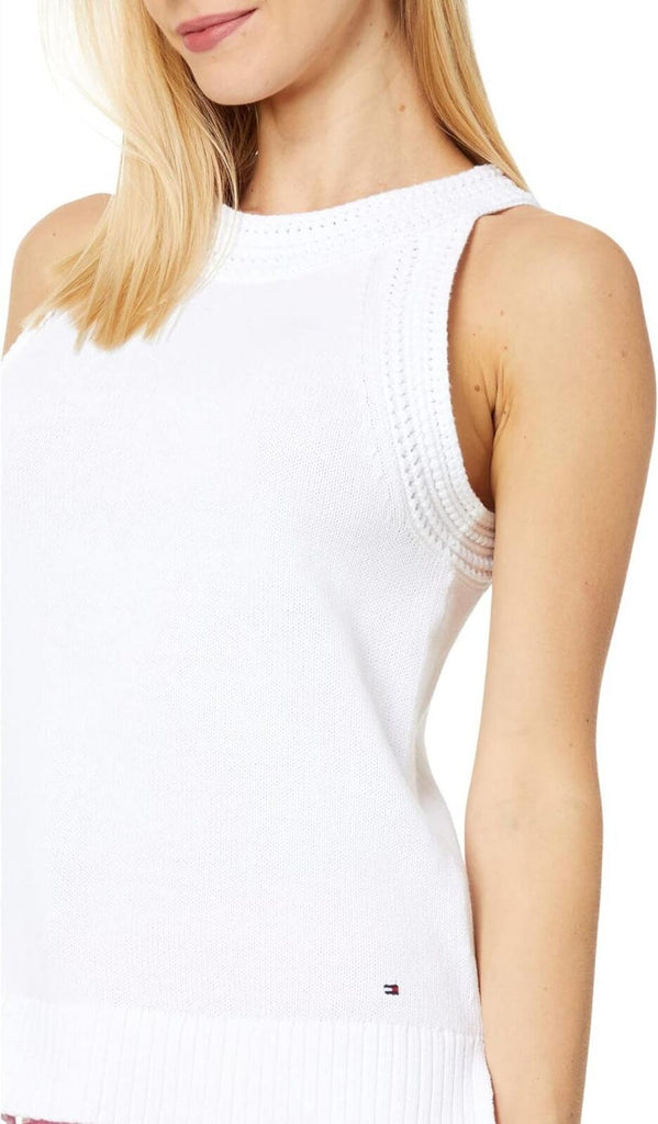 Tommy Hilfiger adds elegance to the classic tank top with the addition of a charming crochet trim and ribbed hemline.
