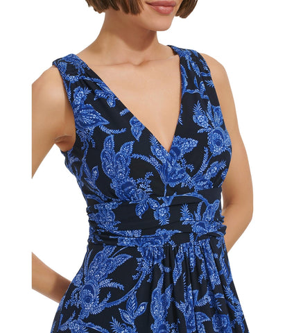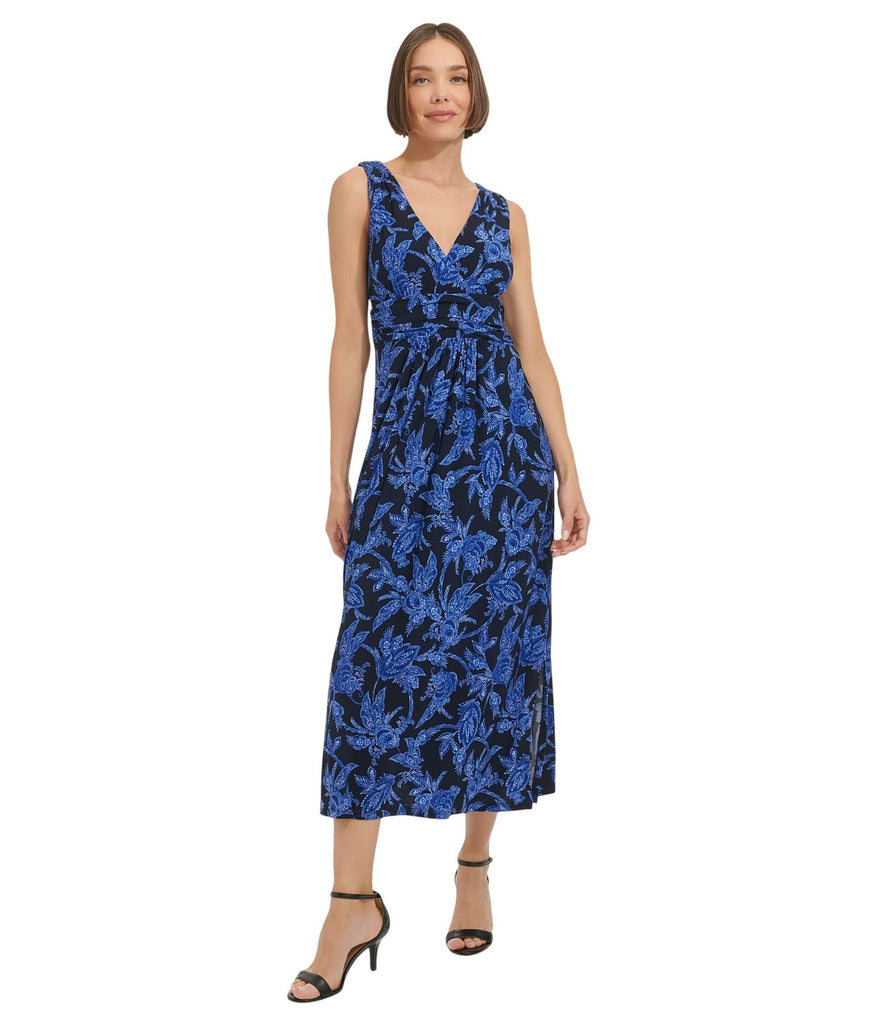 Tommy Hilfiger Womens Printed Ruched Mini Dress Sky Captain / Amparo Blue 8
