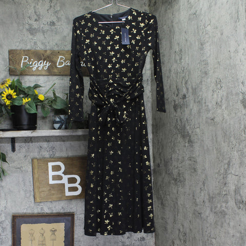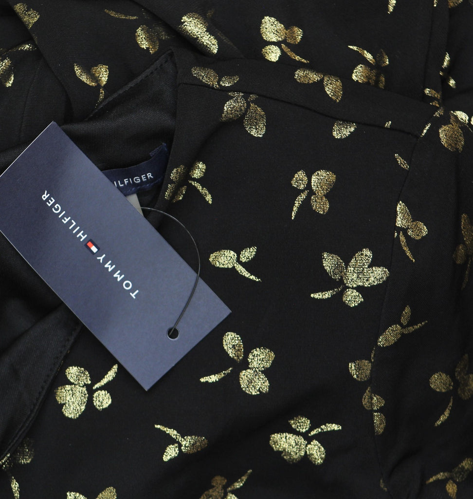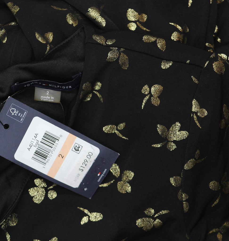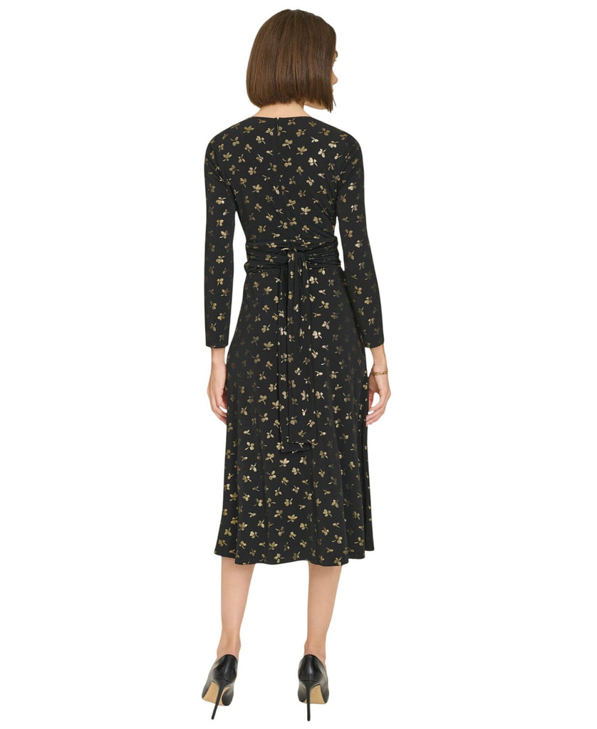 Tommy Hilfiger Womens Printed Ruched-Waist Dress A4IJ114A Black / Gold 2
