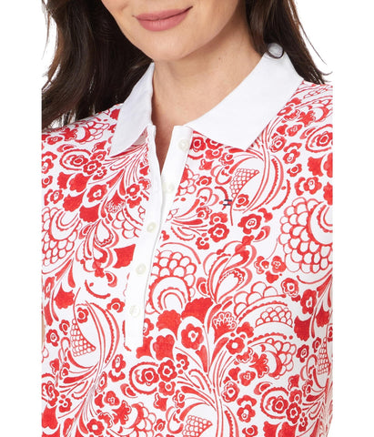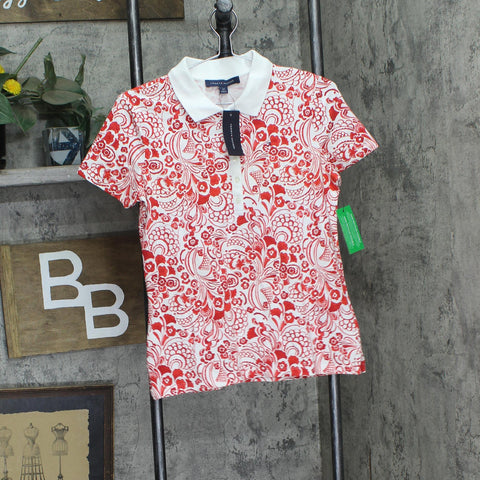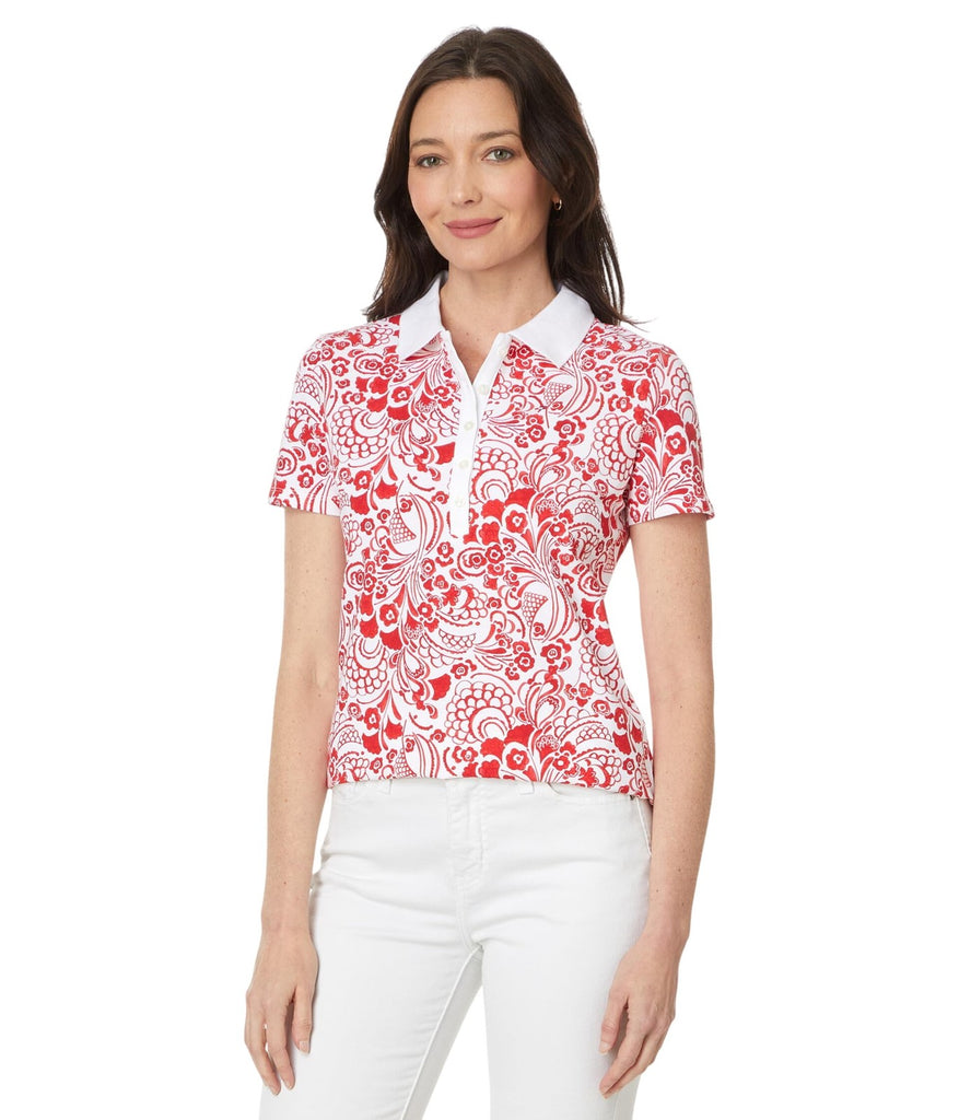 Make a statement wearing the Tommy Hilfiger Short Sleeve Floral Polo. Crafted with a collared neckline and short sleeves, this polo shirt is adorned with a bold allover floral design that exudes a sense of effortless style. Classic fit and pull-on style. Brand logo on the left chest. Straight hemline. 60% cotton, 40% Modal.