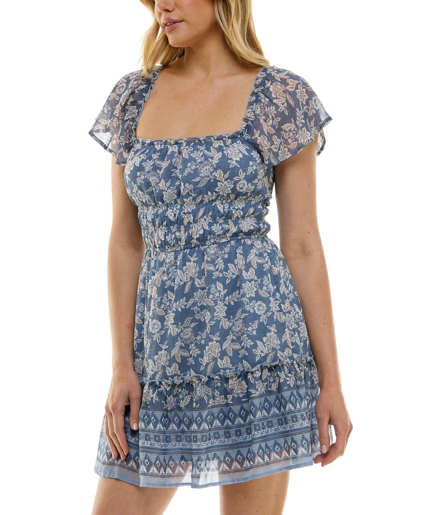 Trixxi Juniors Floral-Print Flutter-Sleeve Dress 26EF76VJII Blue Multi M