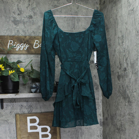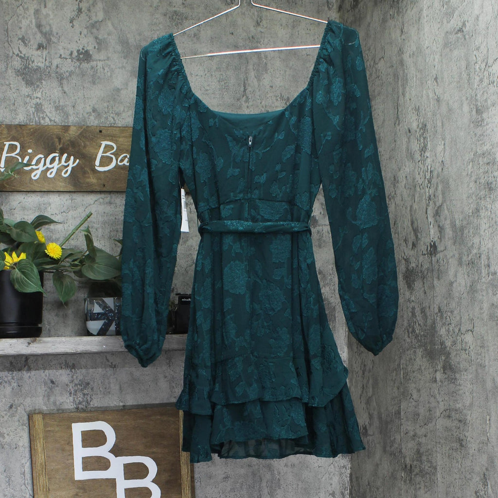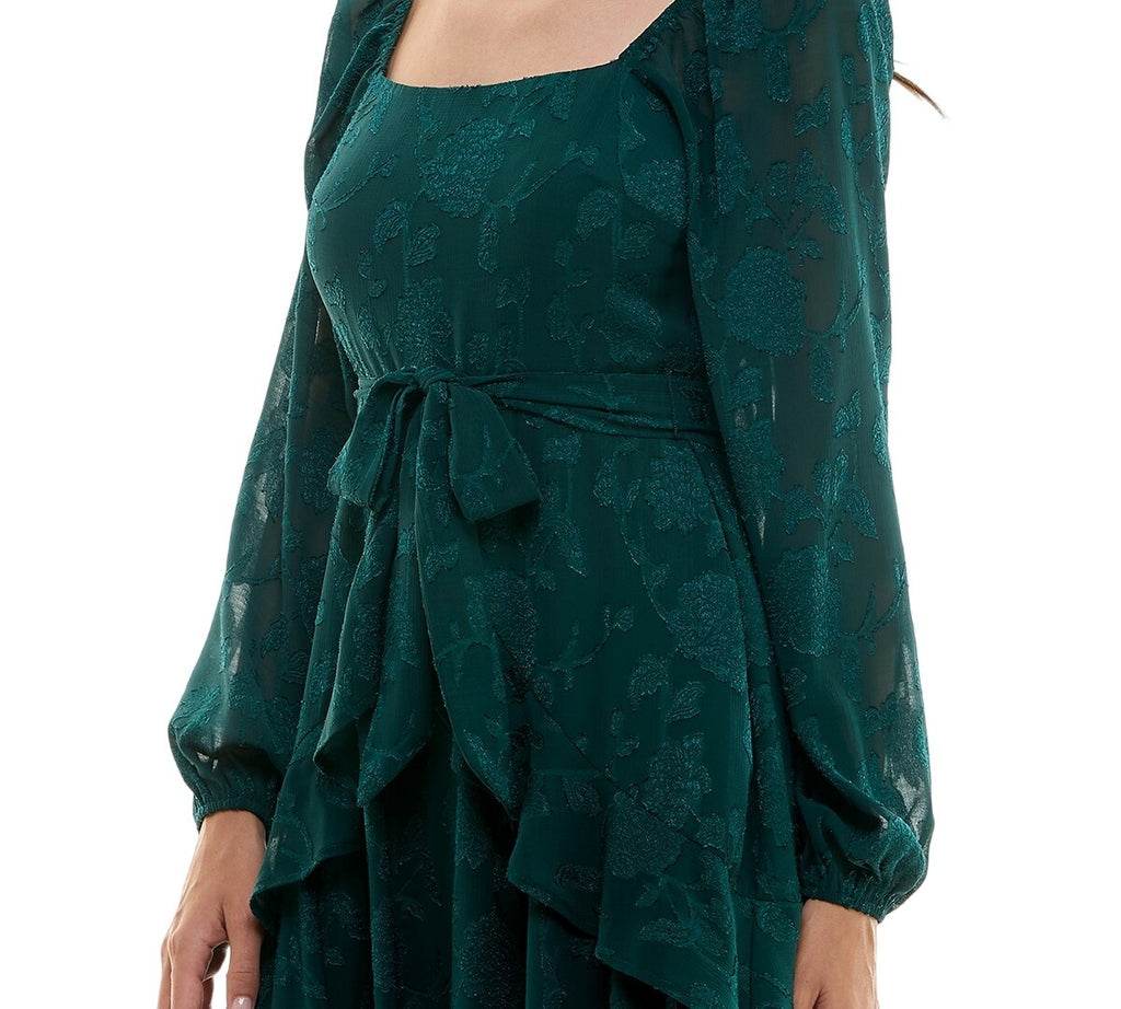 Trixxi Juniors Tie-Waist Ruffled Jacquard Dress Belted 26EB4278FI Hunter Green S