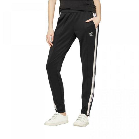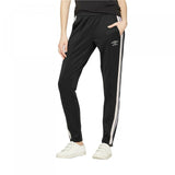 Update your athleisure wardrobe with these women’s Track Pants from Umbro. These on-trend track pants feature a skinny fit that hangs slightly off the leg before tapering near the ankle for a sleek, stylish look. Ankle zippers and side stripes add subtle flair, and a drawstring waist makes sure you can find that perfect fit every time. Polyester-blend fabric will keep you feeling cool and confident all day long — plus, these flattering track pants pair easily with the rest of your athletic wear.