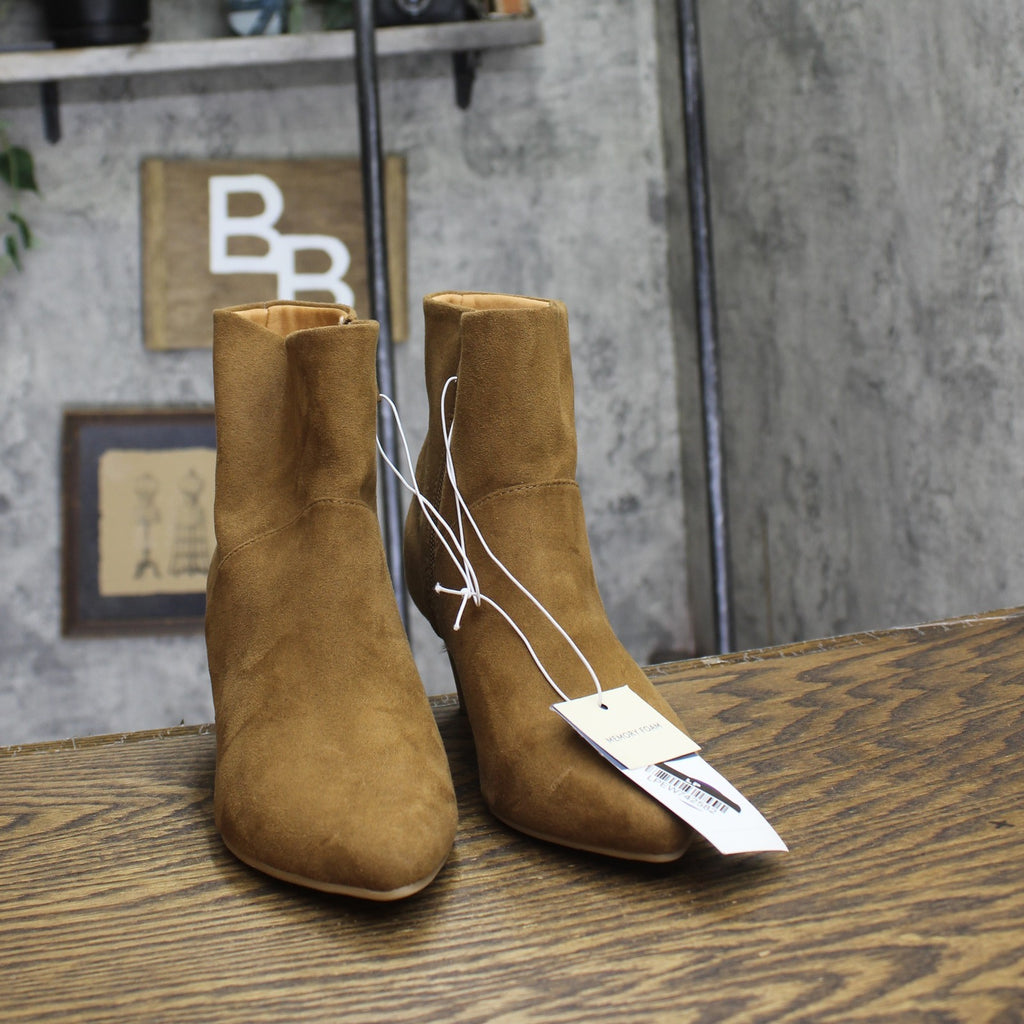 Get your fall fashion on point with these Frances Ankle Boots from Universal Thread. The ankle boots will keep you comfy all day long thanks to their memory foam footbed, soft lining and flocked outsole, and the 2.25-inch block heel adds a statement lift to your height. With a soft microfiber construction and almond toe, these medium-width boots have a side zipper for a sleek look and a secure fit. Universal Thread: The denim collection that's true to you.