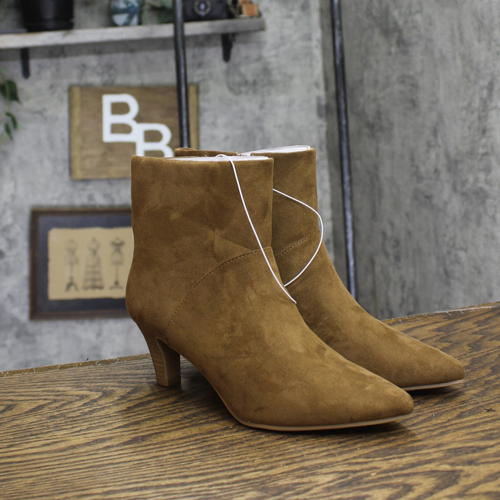 Get your fall fashion on point with these Frances Ankle Boots from Universal Thread. The ankle boots will keep you comfy all day long thanks to their memory foam footbed, soft lining and flocked outsole, and the 2.25-inch block heel adds a statement lift to your height. With a soft microfiber construction and almond toe, these medium-width boots have a side zipper for a sleek look and a secure fit. Universal Thread: The denim collection that's true to you.