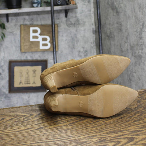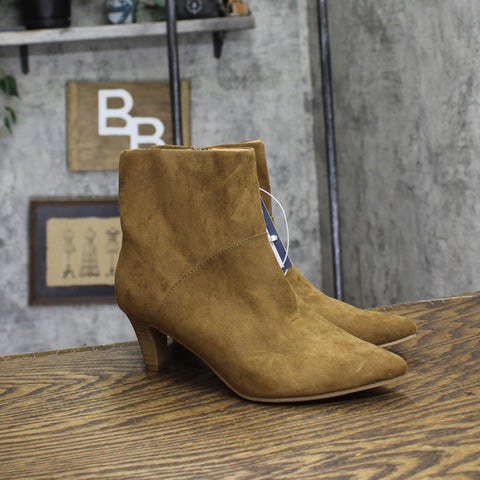 Get your fall fashion on point with these Frances Ankle Boots from Universal Thread. The ankle boots will keep you comfy all day long thanks to their memory foam footbed, soft lining and flocked outsole, and the 2.25-inch block heel adds a statement lift to your height. With a soft microfiber construction and almond toe, these medium-width boots have a side zipper for a sleek look and a secure fit. Universal Thread: The denim collection that's true to you.