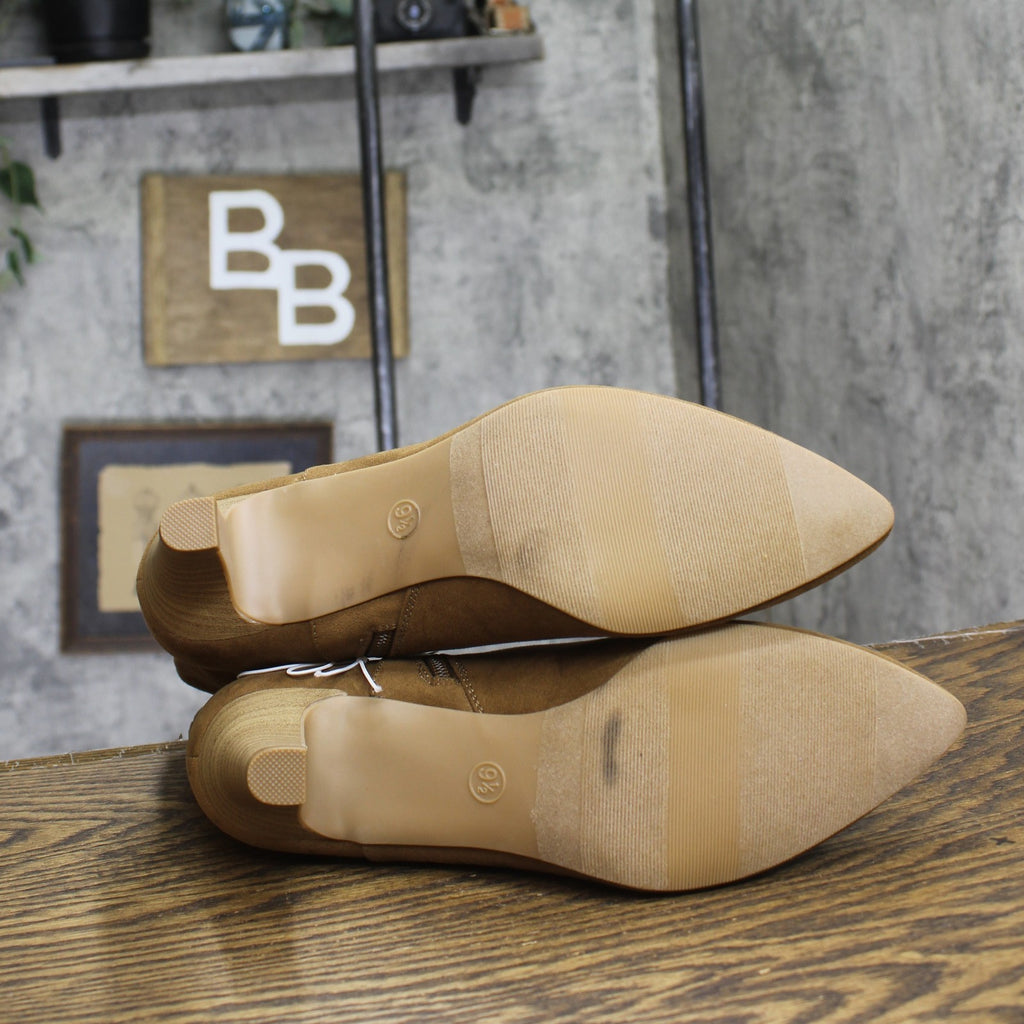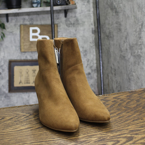 Get your fall fashion on point with these Frances Ankle Boots from Universal Thread. The ankle boots will keep you comfy all day long thanks to their memory foam footbed, soft lining and flocked outsole, and the 2.25-inch block heel adds a statement lift to your height. With a soft microfiber construction and almond toe, these medium-width boots have a side zipper for a sleek look and a secure fit. Universal Thread: The denim collection that's true to you.