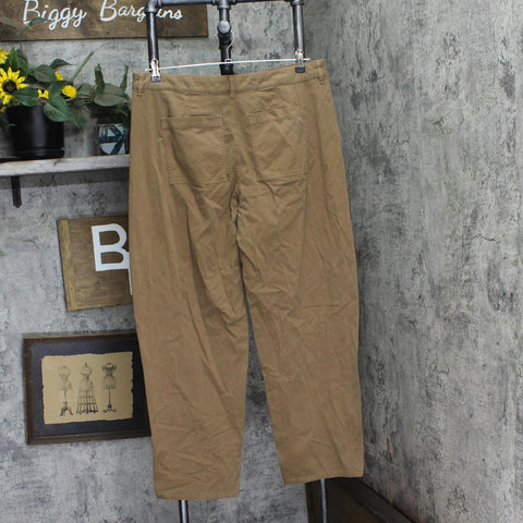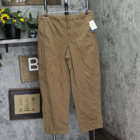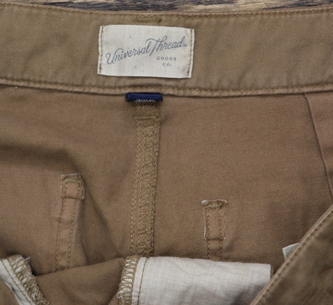 Create a chic look for any occasion with the High-Rise Trousers from Universal Thread. These full-length trousers are designed with a turnback hem in a tapered-leg fit. Universal Thread red trousers High rise Made from cotton and recycled cotton with spandex Tapered fit Full length Front hook-and-loop fastener Sizing: Womens Material: 78% Cotton, 20% Recycled Cotton, 2% Spandex Hem Style: Turnback Hem Fit: Relaxed Leg with a Relaxed Fit Closure Style: Front Hook and Loop Fastener Rise: High Rise Inseam Length: 32 Inches Fabric Name: Twill Garment Length: Full Garment Details: Belt Loops, Back Pocket, Seam Pocket Fabric Weight Type: Midweight Fabric Stretch: Stretch Care and Cleaning: Machine Wash, Tumble Dry