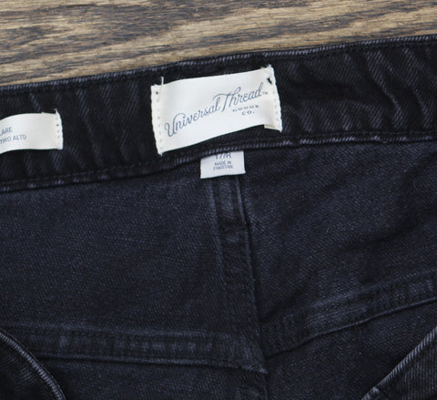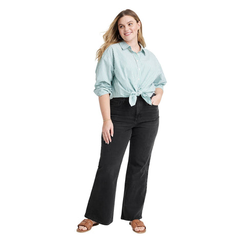 Uplift your denim collection with these High-Rise Flare Jeans from Universal Thread. These flattering high-rise jeans feature a flared silhouette with a slim fit for a stylish look. The fly button, zipper closure and belt loops help you find the best fit, while the front and back pockets add functional flair. Universal Thread high-rise flare jeans Denim fabric with comfort stretch Fly button and zipper and belt loops Front and back pockets Sizing: Womens Plus Material: 98% Cotton, 2% Spandex Hem Style: Plain Hem Fit: Flare with a Relaxed Fit Closure Style: Fly Button and Zipper Rise: High Rise Inseam Length: 34 Inches Fabric Name: Denim Garment Length: Full Garment Details: Belt Loops, Back Yoke, Front Pocket, Coin Pocket, Back Pocket, Zipper, Buttons, Black Wash Package Quantity: 1 Fabric Weight Type: Midweight Fabric Stretch: Stretch Care and Cleaning: Machine Wash, Tumble Dry