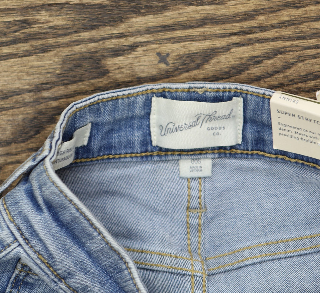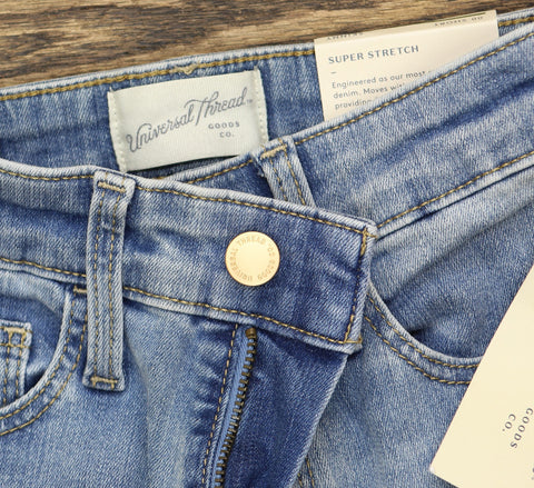 Keep your casual looks both comfortable and flattering with these High-Rise Skinny Jeans from Universal Thread. These flattering high-rise jeans feature a skinny silhouette for a slim, close-fitting look. Made from super stretchy denim fabric, these ankle jeans offer comfortable movement and wear. The belt-loop waistband with a fly button and zipper closure offers a secure fit, while the multiple front and back pockets let you store your small on-the-go essentials. Pair them with anything from tees and tank tops to sweatshirts and blouses for an array of styling options.