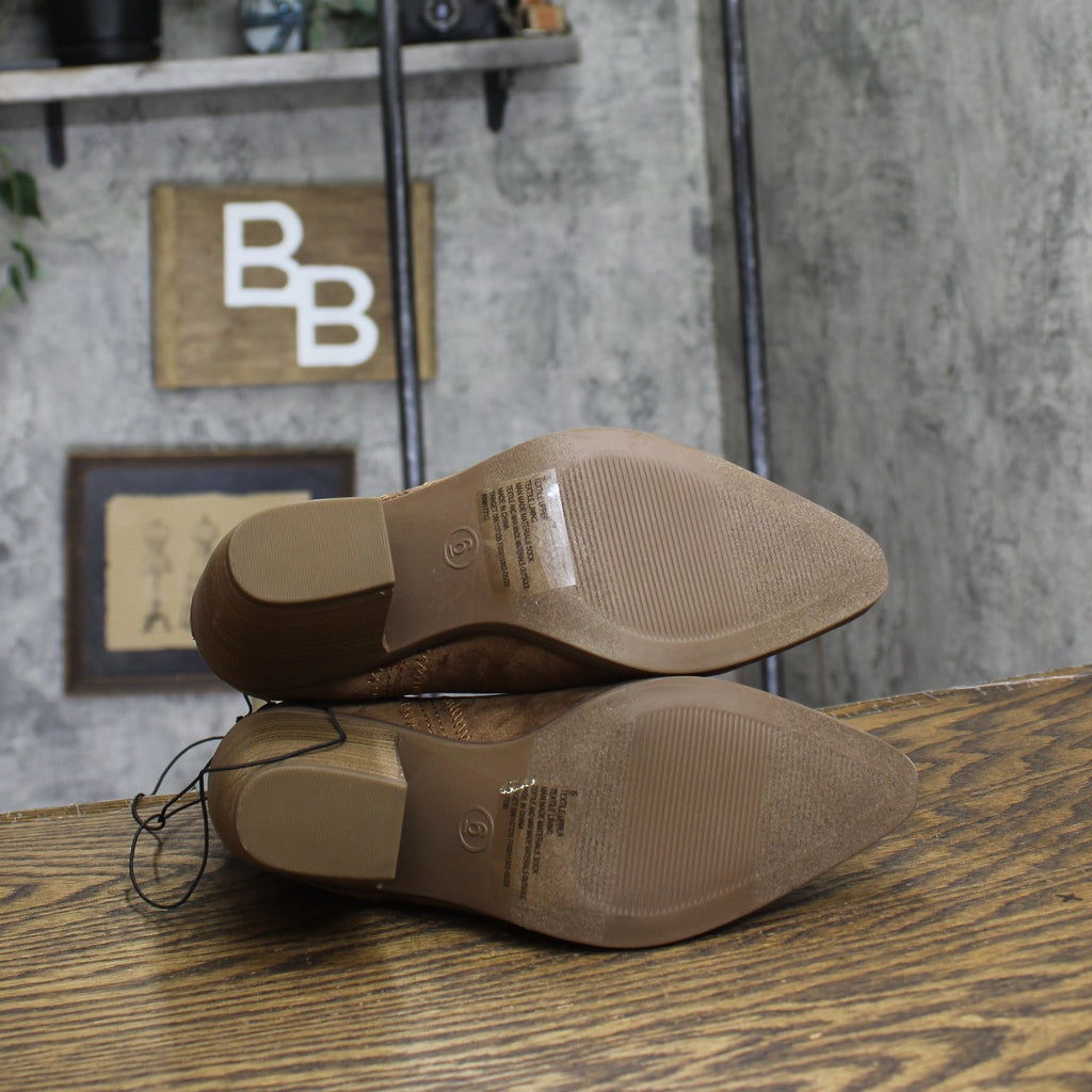 Style a chic look for work, weekends and more with the Kinley Ankle Boots from Universal Thread. These ankle boots feature a western shape with a 3-inch heel and pointed toe, but get a cool and comfortable update with the ribbed fabric cuff at the ankle. A pull loop on the back allows for easier on and off, and the slim shape works well with a variety of dresses, skirts and denim.Universal Thread: The denim collection that's true to you. Universal Thread pull-on ankle boots Approximately 3in western heel Soft fabric cuff at ankle Pointed toe Pull loop for easier on and off Sizing: Womens Care and Cleaning: Brush Away Surface Dirt Footwear Insole Material: 100% Polyurethane Features: Pull-On Construction: Pull Loops Footwear Lining Material: 100% Polyester Toe Style: Pointed Toe Height Type: Ankle Footwear Upper Material: 100% Polyester Heel: Approximately 3.0 Inches Western Heel Footwear Outsole Material: 55% Polyester and 45% TPR (Thermoplastic Rubber) Boot Shaft Circumference: Approximately 10.0 Inches Boot Shaft Height: Approximately 6.0 Inches Shoe Width: Medium Footwear toe openness: Closed Toe Footwear outsole details: Flocked Outsole