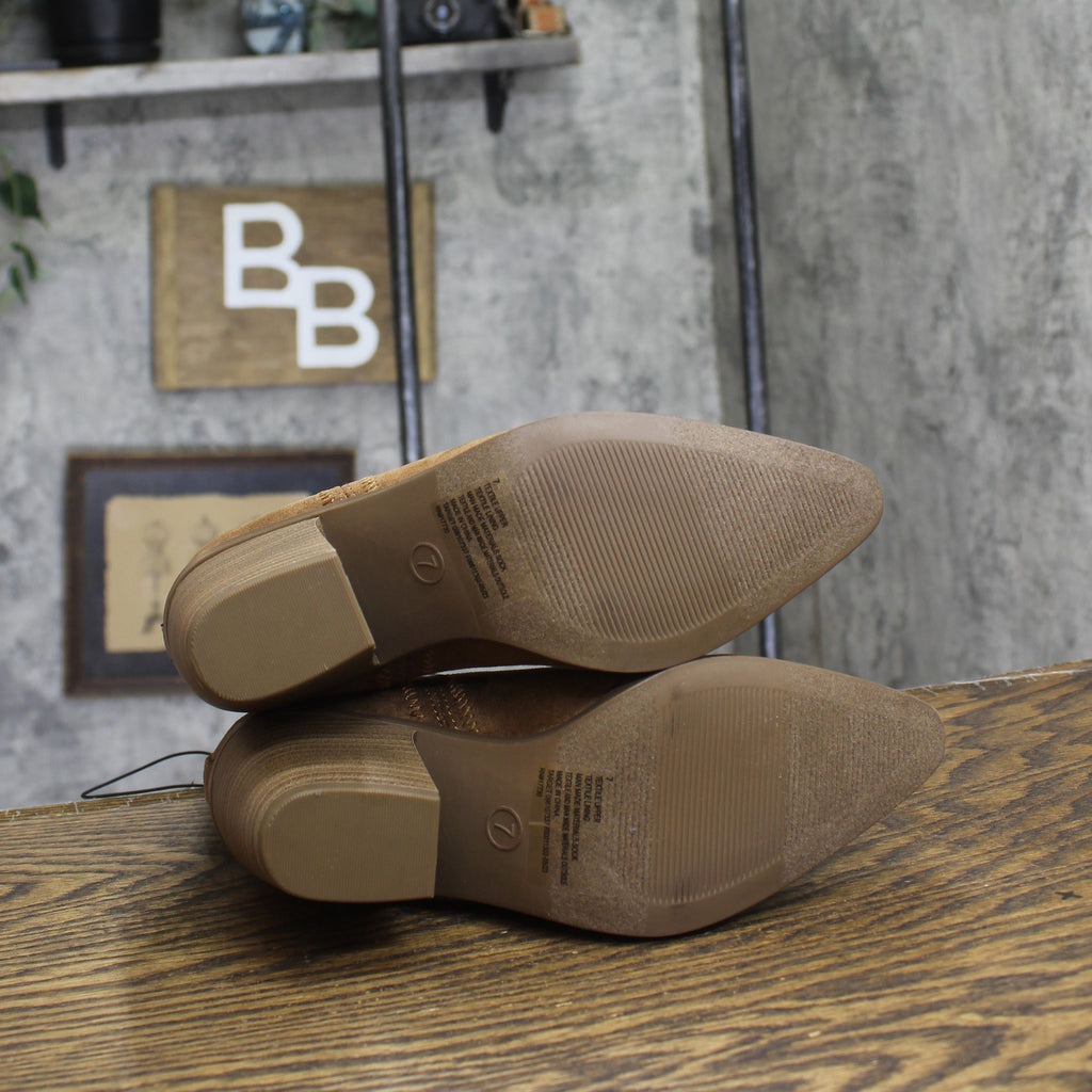 Style a chic look for work, weekends and more with the Kinley Ankle Boots from Universal Thread. These ankle boots feature a western shape with a 3-inch heel and pointed toe, but get a cool and comfortable update with the ribbed fabric cuff at the ankle. A pull loop on the back allows for easier on and off, and the slim shape works well with a variety of dresses, skirts and denim.Universal Thread: The denim collection that's true to you. Universal Thread pull-on ankle boots Approximately 3in western heel Soft fabric cuff at ankle Pointed toe Pull loop for easier on and off Sizing: Womens Care and Cleaning: Brush Away Surface Dirt Footwear Lining Material: 100% Polyester Construction: Pull Loops Footwear Insole Material: 100% Polyurethane Features: Pull-On Height Type: Ankle Toe Style: Pointed Toe Footwear Upper Material: 100% Polyester Footwear Outsole Material: 55% Polyester and 45% TPR (Thermoplastic Rubber) Heel: Approximately 3.0 Inches Western Heel Boot Shaft Circumference: Approximately 10.0 Inches Boot Shaft Height: Approximately 6.0 Inches Shoe Width: Medium Footwear toe openness: Closed Toe Footwear outsole details: Flocked Outsole