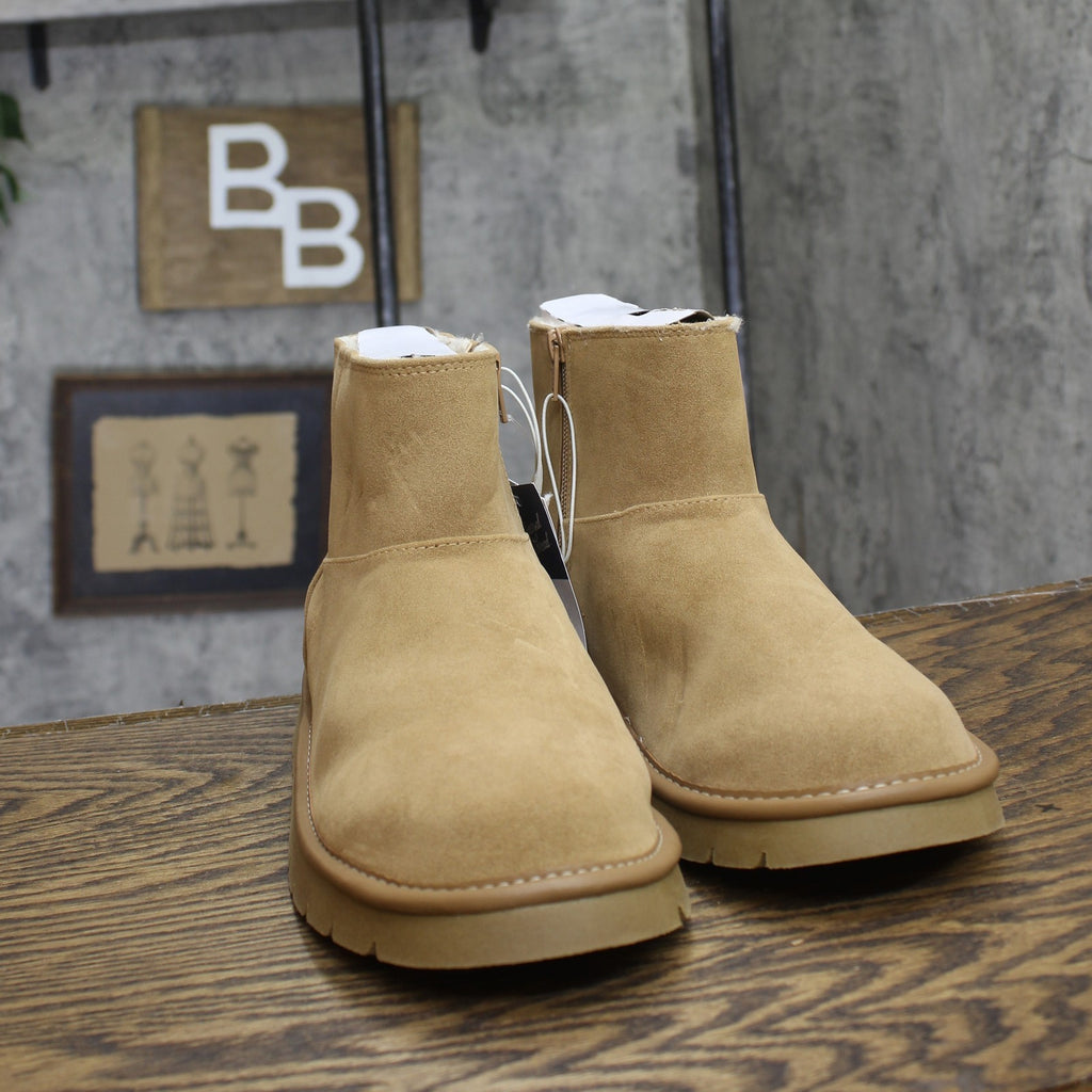 Keep your closet winter ready with the May Faux Suede Booties with Memory Foam Insole from Universal Thread. These ankle-length booties feature a faux suede construction with a faux-shearling interior and cushioned, memory foam insoles to help keep your feet warm and comfortable. Universal Thread faux suede booties Faux suede construction with faux-shearling interior Cushioned, memory foam insole Ankle length Zipper closure Sizing: Womens Care and Cleaning: Clean With Mild Detergent Footwear Lining Material: 100% Polyester Construction: Cushioned Insole, Memory Foam Insole Footwear Insole Material: 100% Polyester Features: Zipper Height Type: Ankle Toe Style: Round Toe Footwear Upper Material: 98% Polyurethane and 2% Zinc Alloy Footwear Outsole Material: 100% TPR (Thermoplastic Rubber) Heel: Approximately 0.75 Inches Wedge Heel Boot Shaft Circumference: Approximately 11.5 Inches Boot Shaft Height: Approximately 4.5 Inches Shoe Width: Medium Footwear toe openness: Closed Toe Footwear outsole details: Textured Outsole