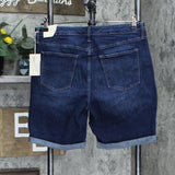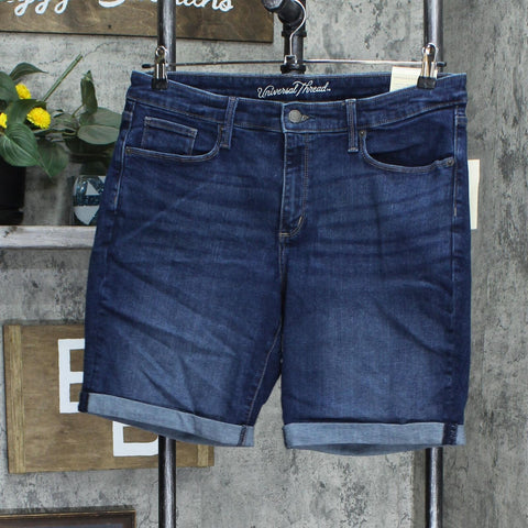 Laid-back and ready for adventure, these Mid-Rise Bermuda Jean Shorts from Universal Thread will be an instant hit in your warm-weather wardrobe. Sporting a slim fit for a chic look and a longer inseam that reinforces the easygoing style, these Bermuda shorts are simply made for sunny days and warm nights. Cut from stretch denim with a mid-rise, you'll keep comfortable and feel confident no matter what you pair them with. Faux-leather mules and a tucked-in blouse will give them plenty of polished flair, but you can enhance the laid-back flair of rolled cuffs with canvas sneakers and a slouchy tee. Either way, these mid-rise denim shorts will take you through spring and summer days in simply sleek style.
