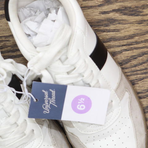 Bring on-trend style to your casual looks with these Nikita Fashion Sneakers from Universal Thread. The low-top fashion sneakers feature a medium width with memory foam insoles to keep your feet nice and happy. Showcasing textured, perforated uppers for a stylish look, the sneakers are designed with lace-up closures to give you a comfy fit. Pair them with anything from sundresses to skinny jeans and a simple tee for chic style. Universal Thread fashion sneakers Memory foam insole Lace-up closure Closed round toe Medium width Sizing: Womens Fabric Name: Faux Leather Care and Cleaning: Clean With Mild Detergent Footwear Lining Material: 100% Polyester Construction: Memory Foam Insole Footwear Insole Material: 100% Polyurethane Features: Lace Up Height Type: Low Top Toe Style: Round Toe Footwear Upper Material: 88% Polyurethane and 12% Polyester Heel: No Heel Shoe Width: Medium Footwear outsole material 2: TPR (Thermoplastic Rubber) Footwear outsole material 1 percentage: 58 Footwear outsole material 2 percentage: 42 Footwear toe openness: Closed Toe Footwear outsole details: Textured Outsole Battery: No Battery Used