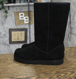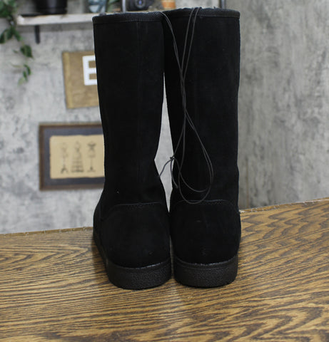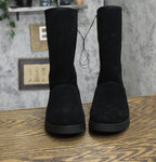 Embrace winter in style with these Sarah Suede Shearling Winter Boots from Universal Thread. These suede mid-calf boots in a solid color feature a 9.5-inch shaft height, along with faux-shearling lining and a cushioned insole for warm comfort. Universal Thread suede winter boots in solid color 9.5in shaft height Cushioned insole Faux-shearling lining Pull-on design Textured TPR outsole Sizing: Womens Care and Cleaning: Brush Away Surface Dirt Footwear Insole Material: 100% Polyester Features: Pull-On Construction: Cushioned Insole Footwear Lining Material: 100% Polyester Toe Style: Round Toe Height Type: Mid Calf Footwear Upper Material: 97% Leather and 3% Polyester Heel: No Heel Footwear Outsole Material: 100% TPR (Thermoplastic Rubber) Boot Shaft Circumference: Approximately 15.5 Inches Boot Shaft Height: Approximately 9.5 Inches Shoe Width: Medium Footwear toe openness: Closed Toe Footwear outsole details: Textured Outsole
