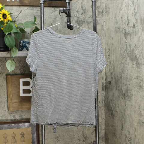 This Short-Sleeve Knit Tie Front T-Shirt from Universal Thread gives your everyday wardrobe collection an instant upgrade. This short-sleeve top features a crewneck design with an at-hip length making it your go-to choice for year-round wear. Showcasing a tie front for a flattering silhouette, this tee is constructed from a 100% cotton fabric that ensures breathable wear every time. Whether you wear it along with wide-leg trousers or pair it with slim cut jeans and sandals or ankle boots, you ll surely love the versatile styling it brings to your everyday attire.