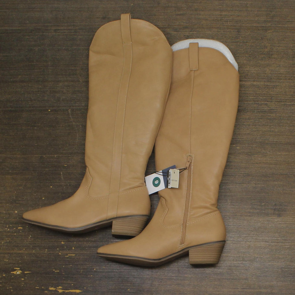 Step out in style whether it’s for line dancing or brunch with these Sommer Western Boots from Universal Thread. Complete with a smart 1.5in western heel and a classic pointed-toe front, they feature a knee height and flocked outsole for on-trend style. A side half zipper and pull loops make for easy on and off. Simply pair with anything from bootcut jeans to skirts and midi dresses for effortless style wherever you go.Universal Thread: The denim collection that's true to you. Universal Thread Sommer western boots 1.5in western heel Pointed toe Features half zipper and pull loops Closed toe and medium width Knee height Sizing: Womens Care and Cleaning: Brush Away Surface Dirt Footwear Lining Material: 100% Polyester Construction: Pull Loops Footwear Insole Material: 100% Polyurethane Features: Zipper Height Type: Knee Toe Style: Pointed Toe Footwear Upper Material: 100% Polyurethane and 1% Polyurethane Footwear Outsole Material: 100% TPR (Thermoplastic Rubber) Heel: Approximately 1.5 Inches Western Heel Boot Shaft Circumference: Approximately 15.0 Inches Boot Shaft Height: Approximately 16.5 Inches Shoe Width: Medium Footwear toe openness: Closed Toe Footwear outsole details: Smooth Outsole