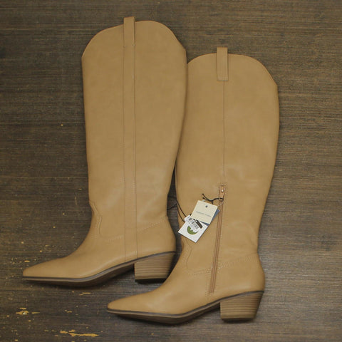 Step out in style whether it’s for line dancing or brunch with these Sommer Western Boots from Universal Thread. Complete with a smart 1.5in western heel and a classic pointed-toe front, they feature a knee height and flocked outsole for on-trend style. A side half zipper and pull loops make for easy on and off. Simply pair with anything from bootcut jeans to skirts and midi dresses for effortless style wherever you go.Universal Thread: The denim collection that's true to you. Universal Thread Sommer western boots 1.5in western heel Pointed toe Features half zipper and pull loops Closed toe and medium width Knee height Sizing: Womens Care and Cleaning: Brush Away Surface Dirt Footwear Lining Material: 100% Polyester Construction: Pull Loops Footwear Insole Material: 100% Polyurethane Features: Zipper Height Type: Knee Toe Style: Pointed Toe Footwear Upper Material: 100% Polyurethane and 1% Polyurethane Footwear Outsole Material: 100% TPR (Thermoplastic Rubber) Heel: Approximately 1.5 Inches Western Heel Boot Shaft Circumference: Approximately 15.0 Inches Boot Shaft Height: Approximately 16.5 Inches Shoe Width: Medium Footwear toe openness: Closed Toe Footwear outsole details: Smooth Outsole