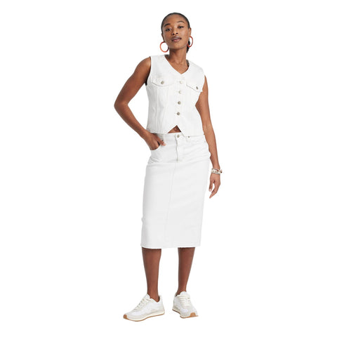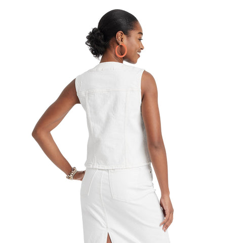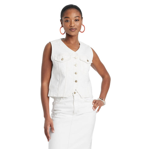 This Button-Front Denim Vest from Universal Thread will make a cool addition to your denim collection. Made from midweight cotton fabric with added stretch in a regular fit, it offers comfortable all-day wear. The flattering V-neckline, button-front design and chest flap pockets add touches of classic style. Universal Thread denim vest Cotton fabric with stretch V-neck, chest flap pockets Front button-down design Regular fit with at-hip length STANDARD 100 by OEKO-TEX certified Sizing: Womens Material: 99% Cotton, 1% Spandex Hem Style: Plain Hem Fit: Relaxed Fit Fabric Name: Woven, Denim Garment Style: Front Button Length: At Hip Neckline: V Neck Garment Details: Back Yoke, Jetted Pocket with Flap, Double-Stitched Seam, Front Yoke, Enzyme Wash Industry or Government Certifications: OEKO-TEX STANDARD 100 Garment back type: Yoke Fabric Weight Type: Midweight Fabric OEKO-TEX Certification Number: 22.HCN.07478 Care and Cleaning: Machine Wash, Tumble Dry