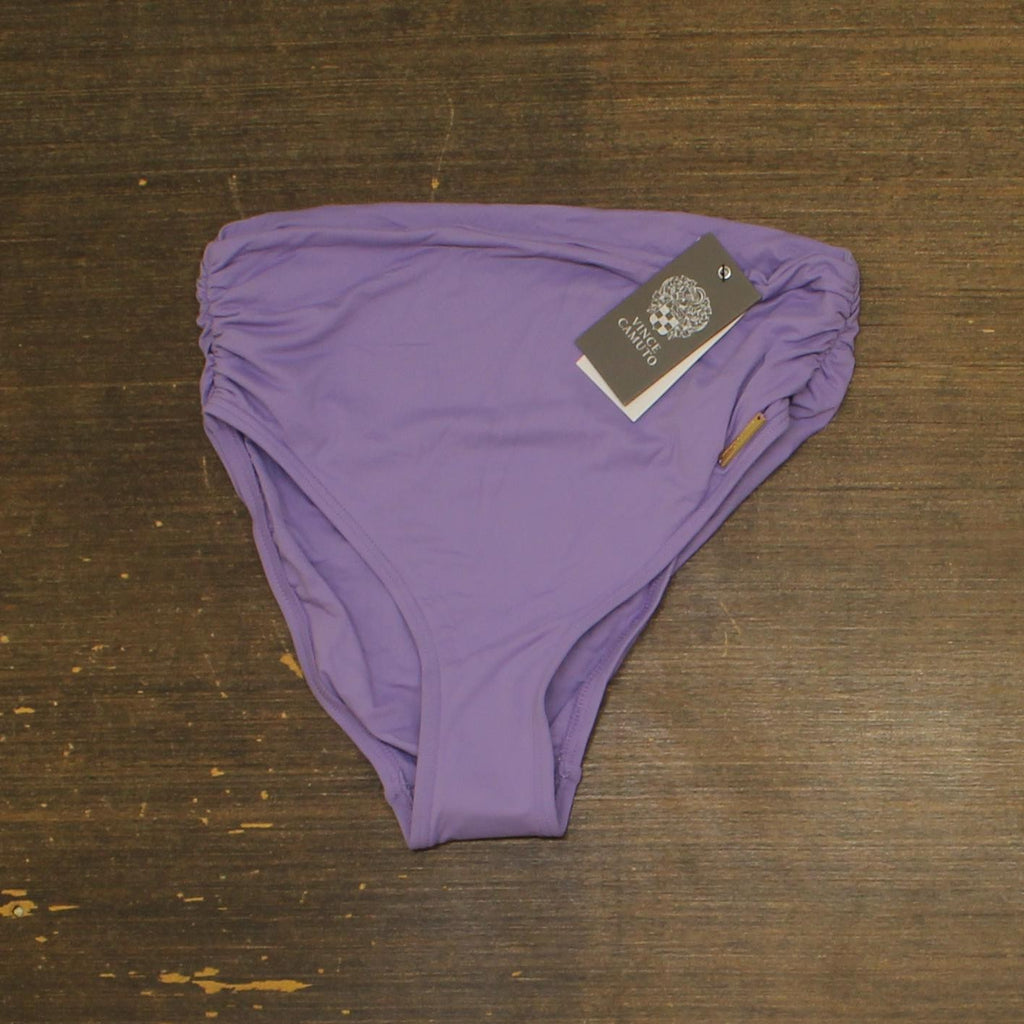 Known for cool contemporary style, Vince Camuto's high-waisted bikini bottoms exude that fashion-forward edge. Sits above hips