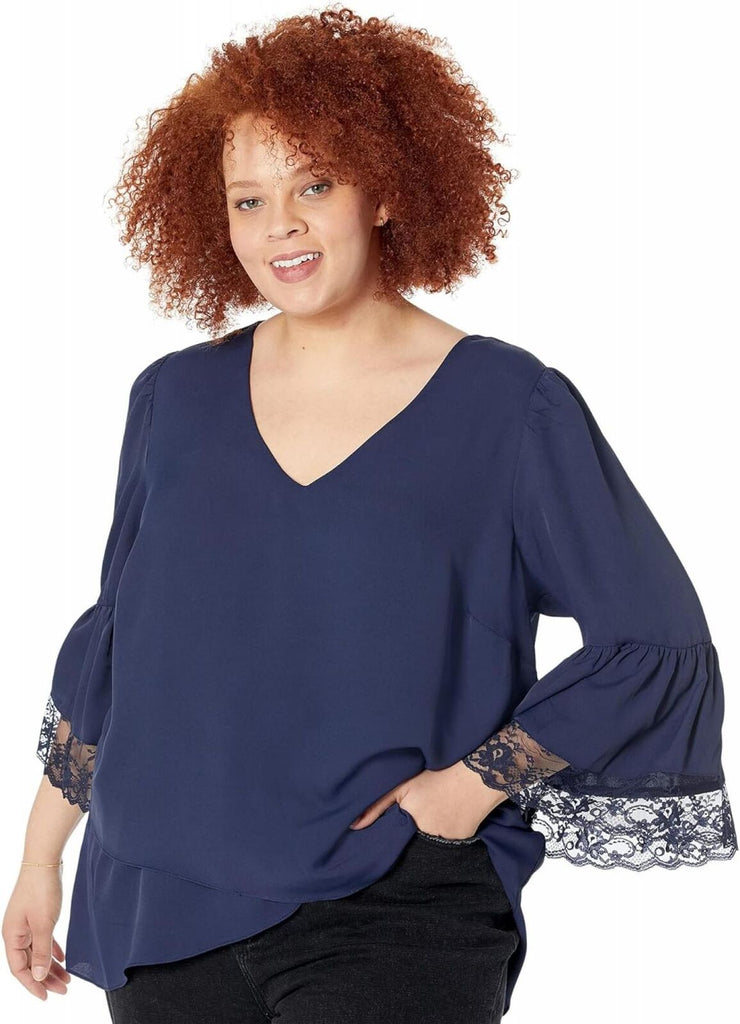 Lace trim lends a lovely touch to this tiered-sleeve plus size top from Vince Camuto.